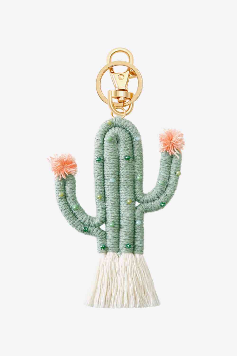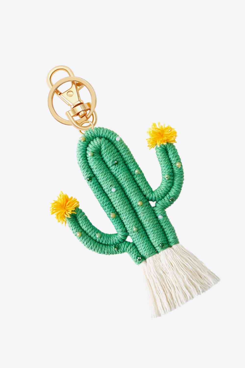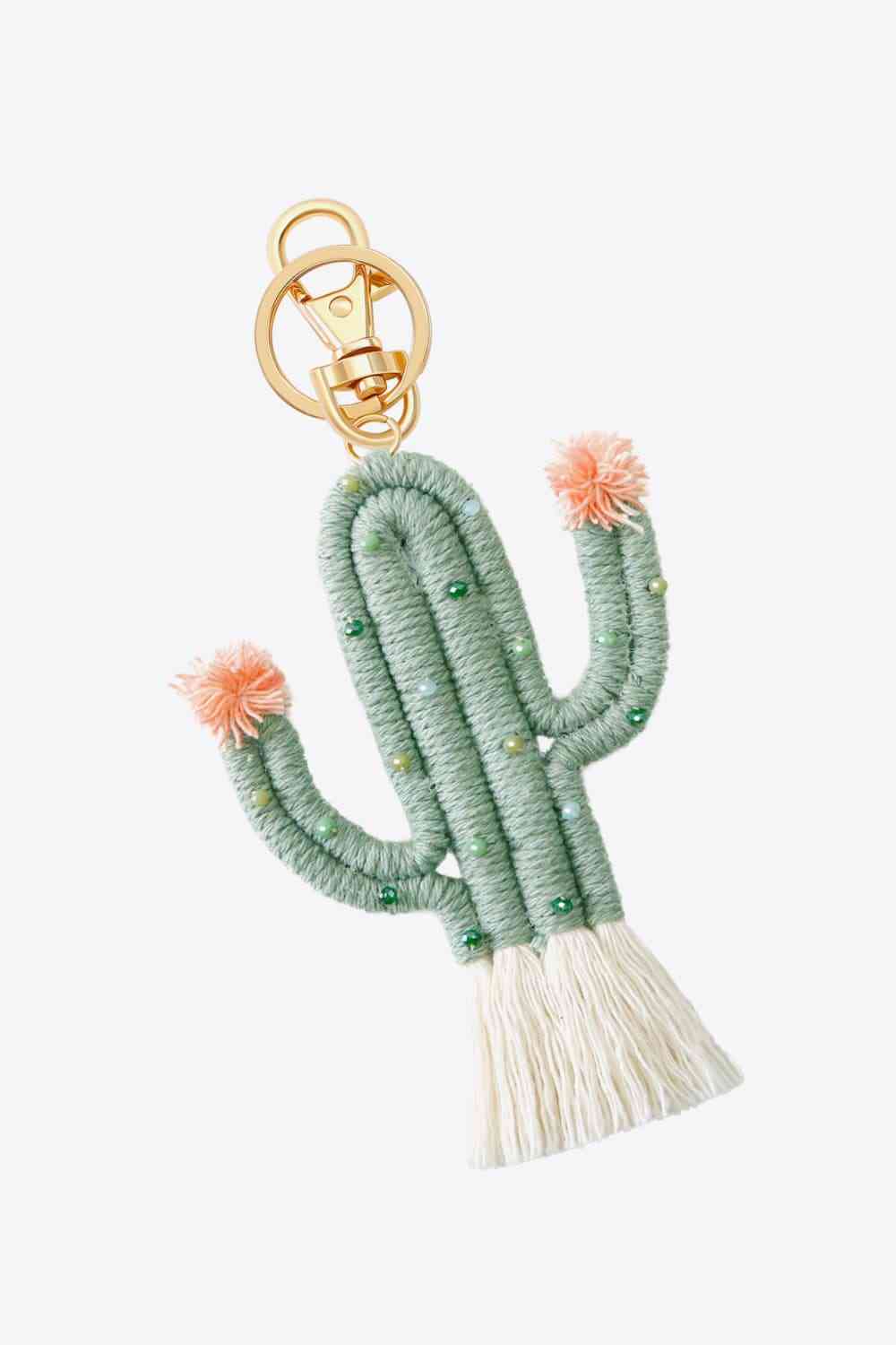 Bead Trim Cactus Keychain with Fringe