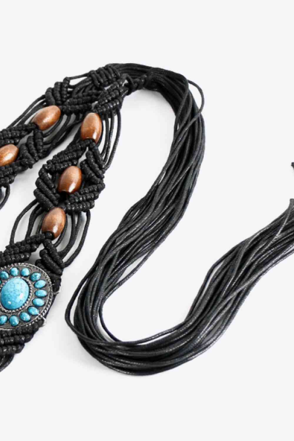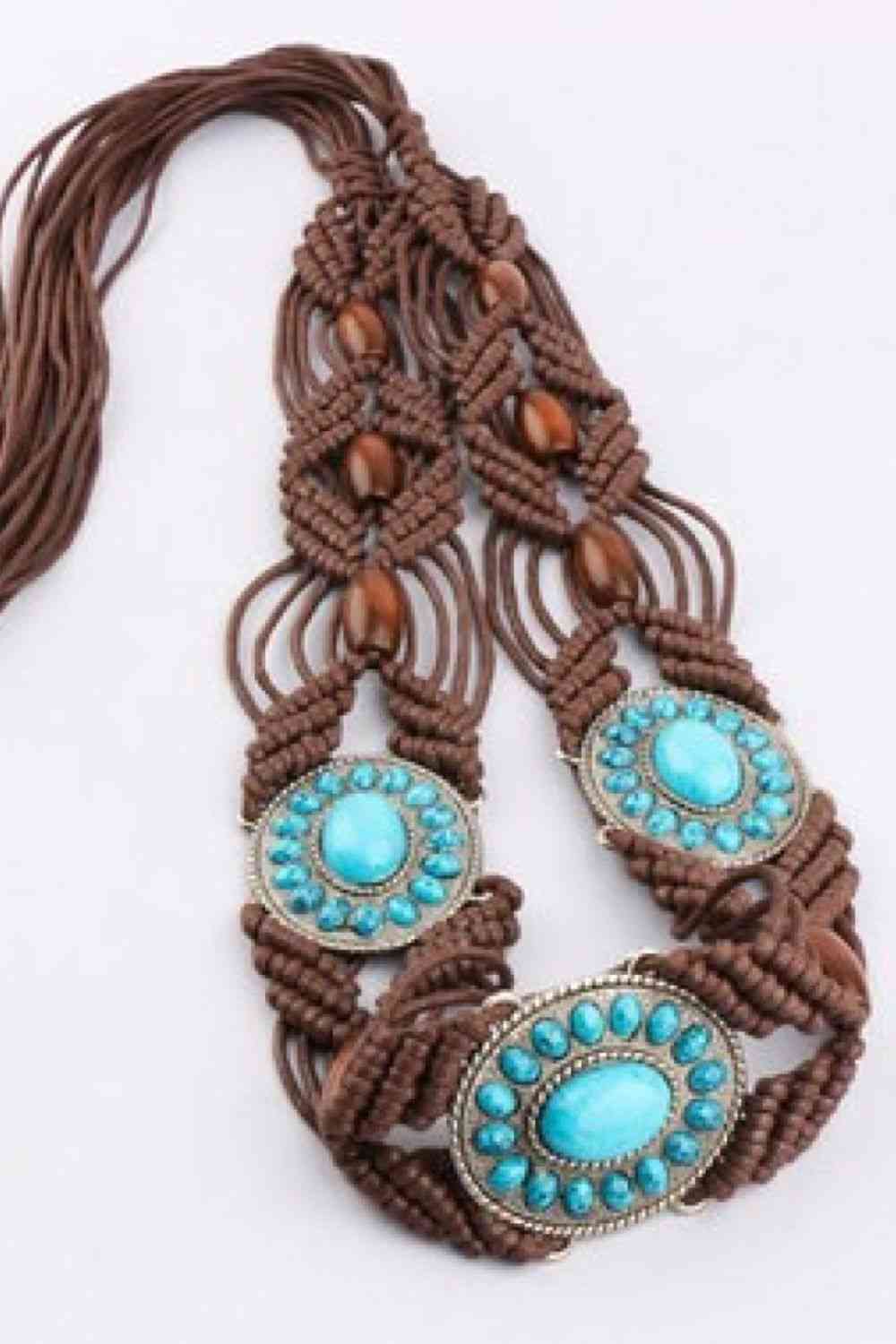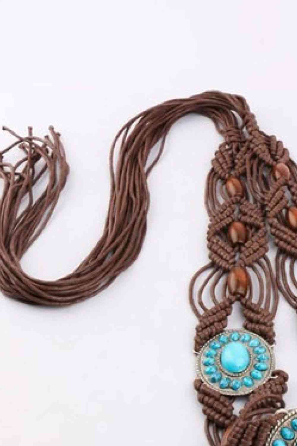 Material: Cotton rope, wooden beads, alloy imitation treasure