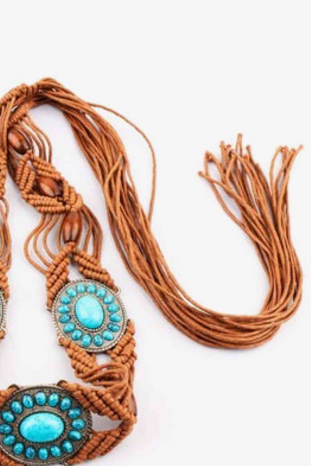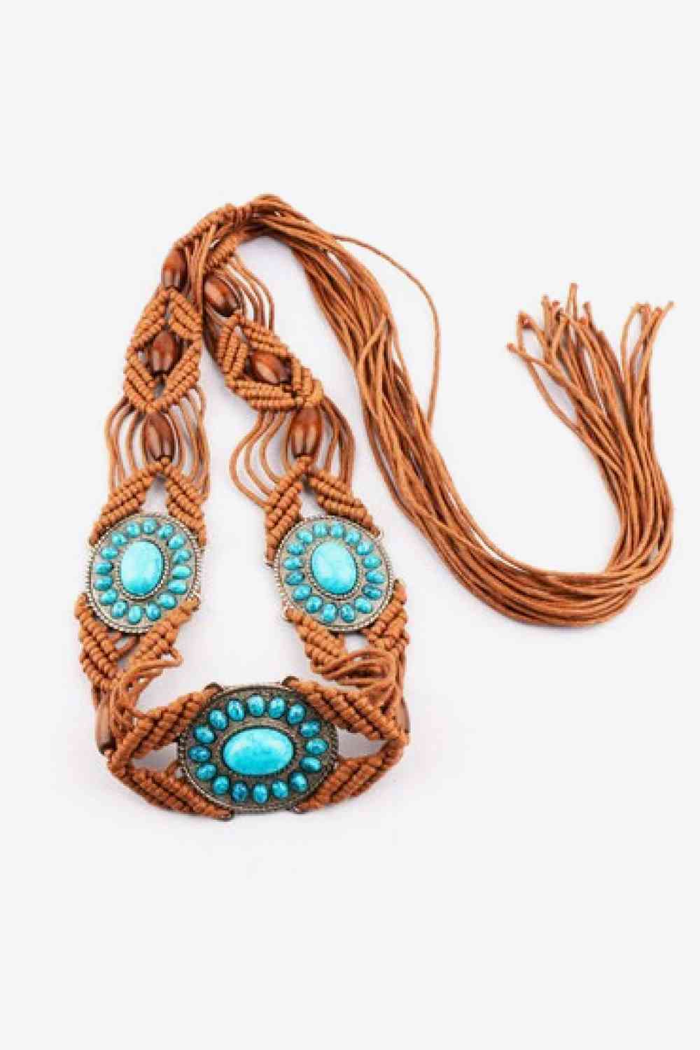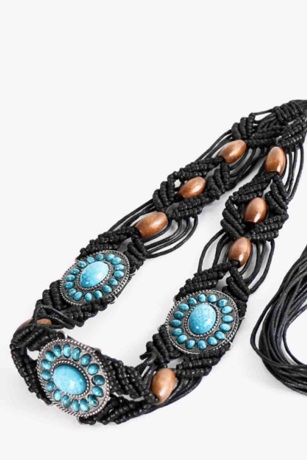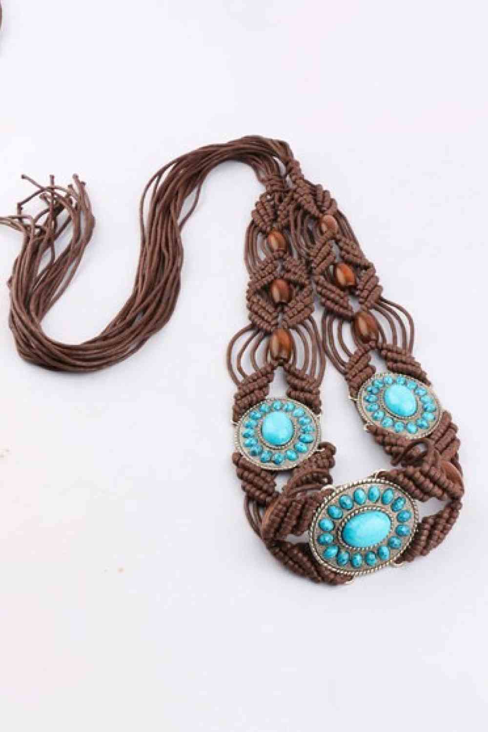 Material: Cotton rope, wooden beads, alloy imitation treasure