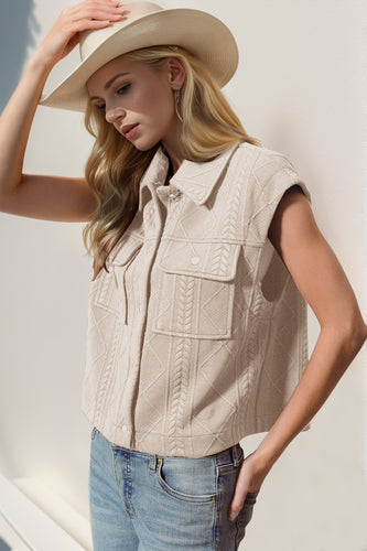 Double Take Snap Down Texture Crop Vest