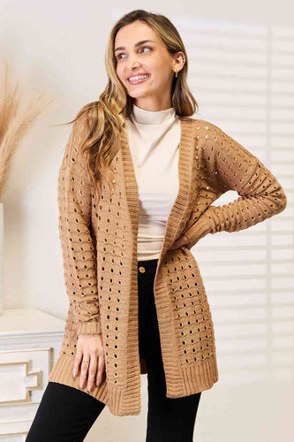 Woven Right Openwork Horizontal Ribbing Open Front Cardigan