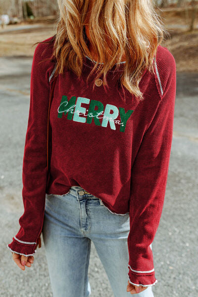 MERRY CHRISTMAS Exposed Seam Long Sleeve T-Shirt