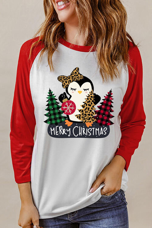 MERRY CHRISTMAS Penguin Round Neck Long Sleeve T-Shirt