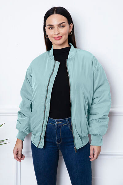 • Load image into Gallery viewer, Ruched Zip Up Dropped Shoulder Jacket
