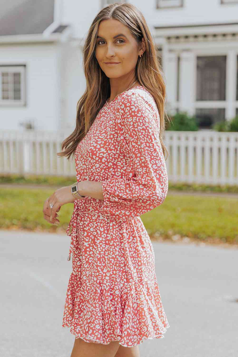 • Load image into Gallery viewer, Leopard Round Neck Ruffle Hem Dress