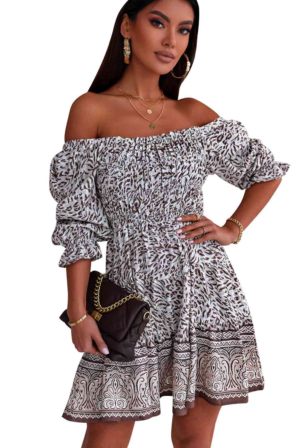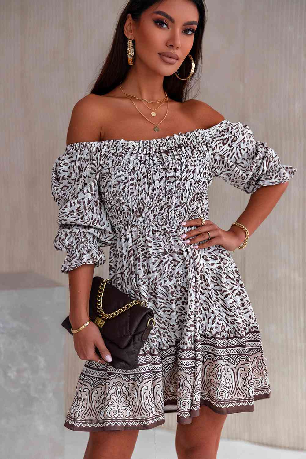 • Load image into Gallery viewer, Printed Off-Shoulder Pleated Dress