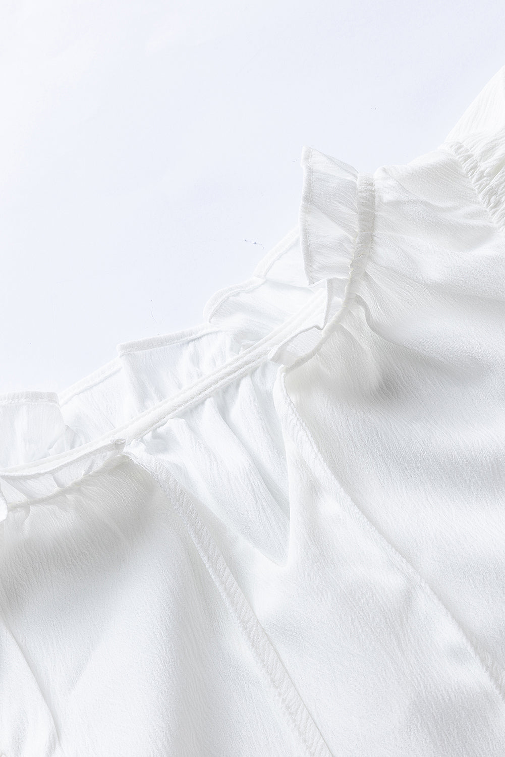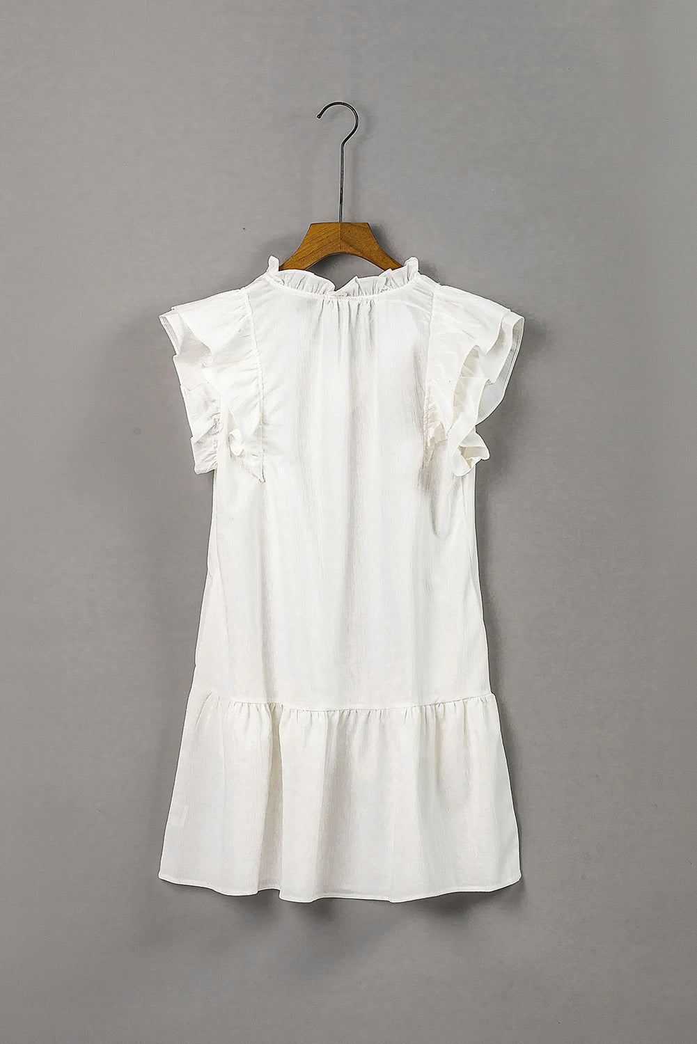 Ruffle Shoulder Tie-Neck Tiered Dress