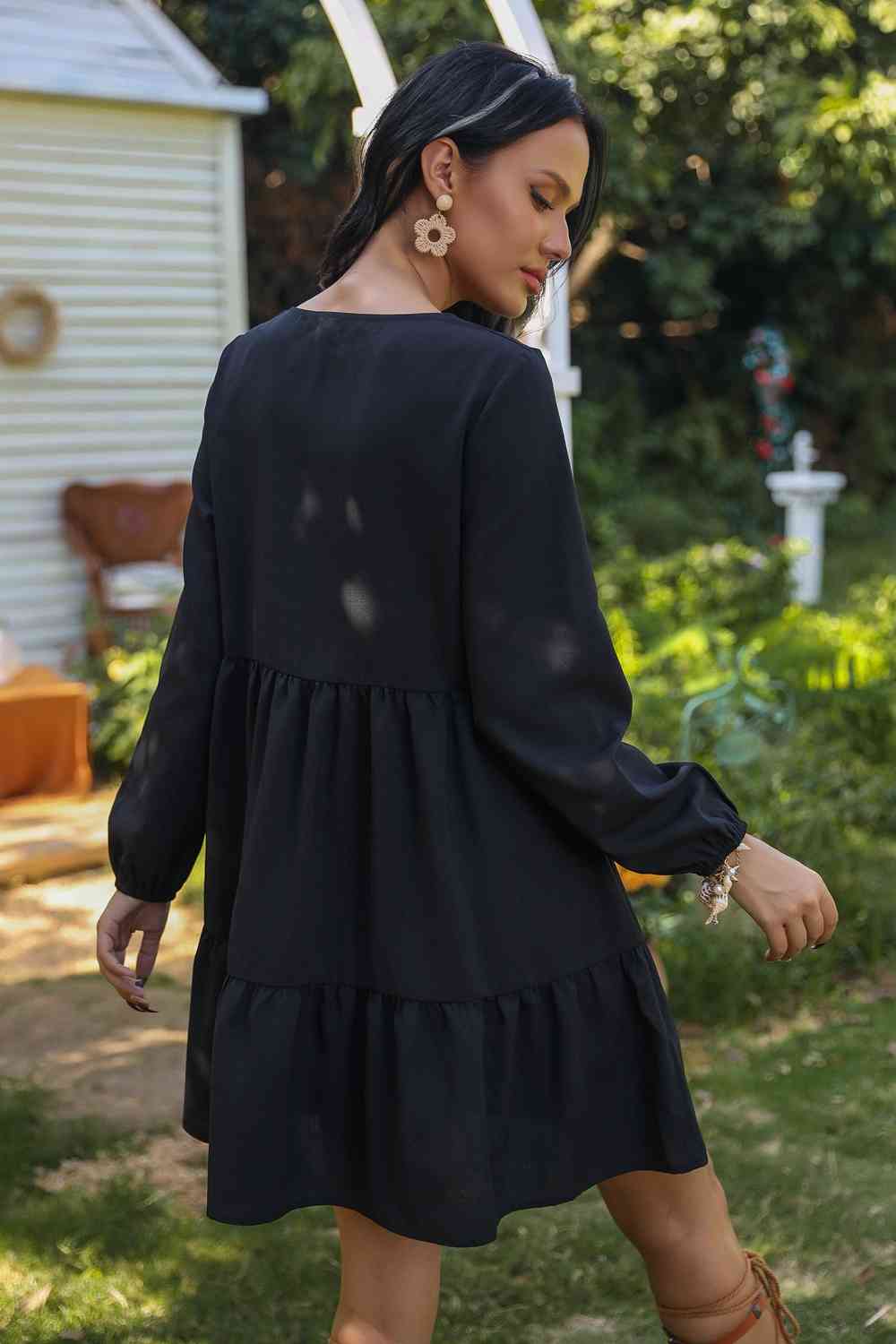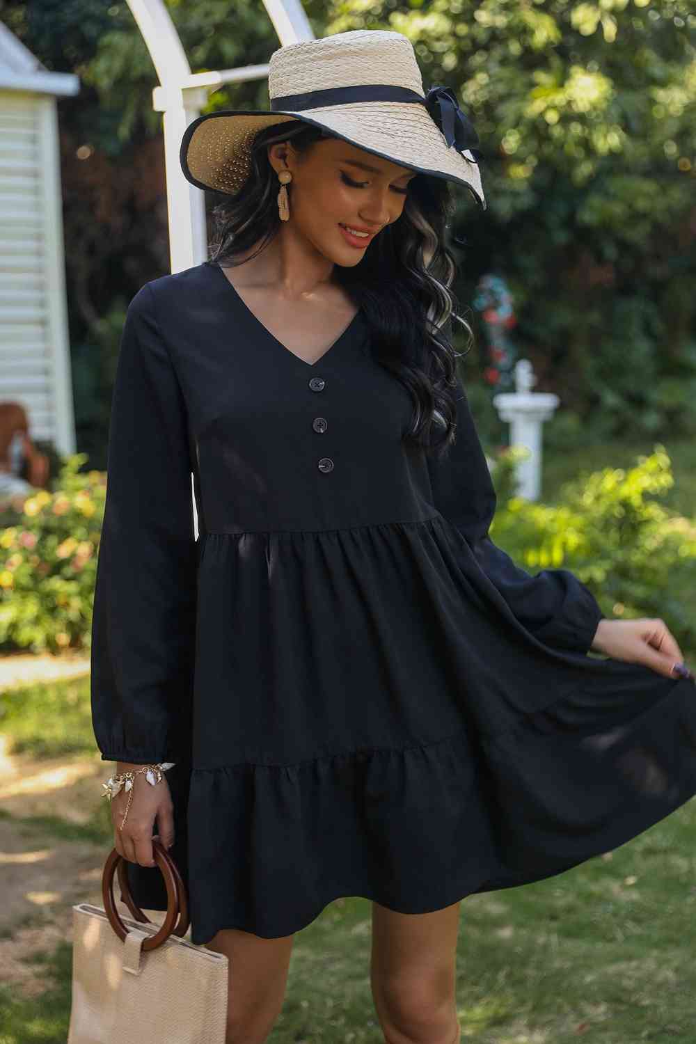 • Load image into Gallery viewer, V-Neck Buttoned Long Sleeve Dress