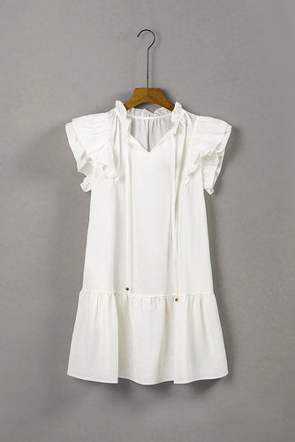 Ruffle Shoulder Tie-Neck Tiered Dress