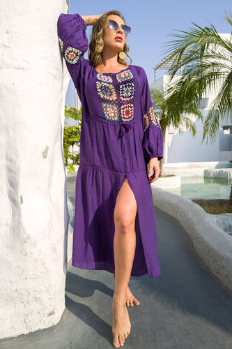 Buttoned V-Neck Flutter Sleeve Pleated Dress