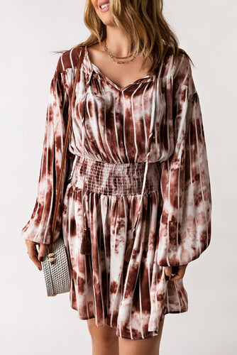 Tie-Dye Smocked Waist Balloon Sleeve Dress