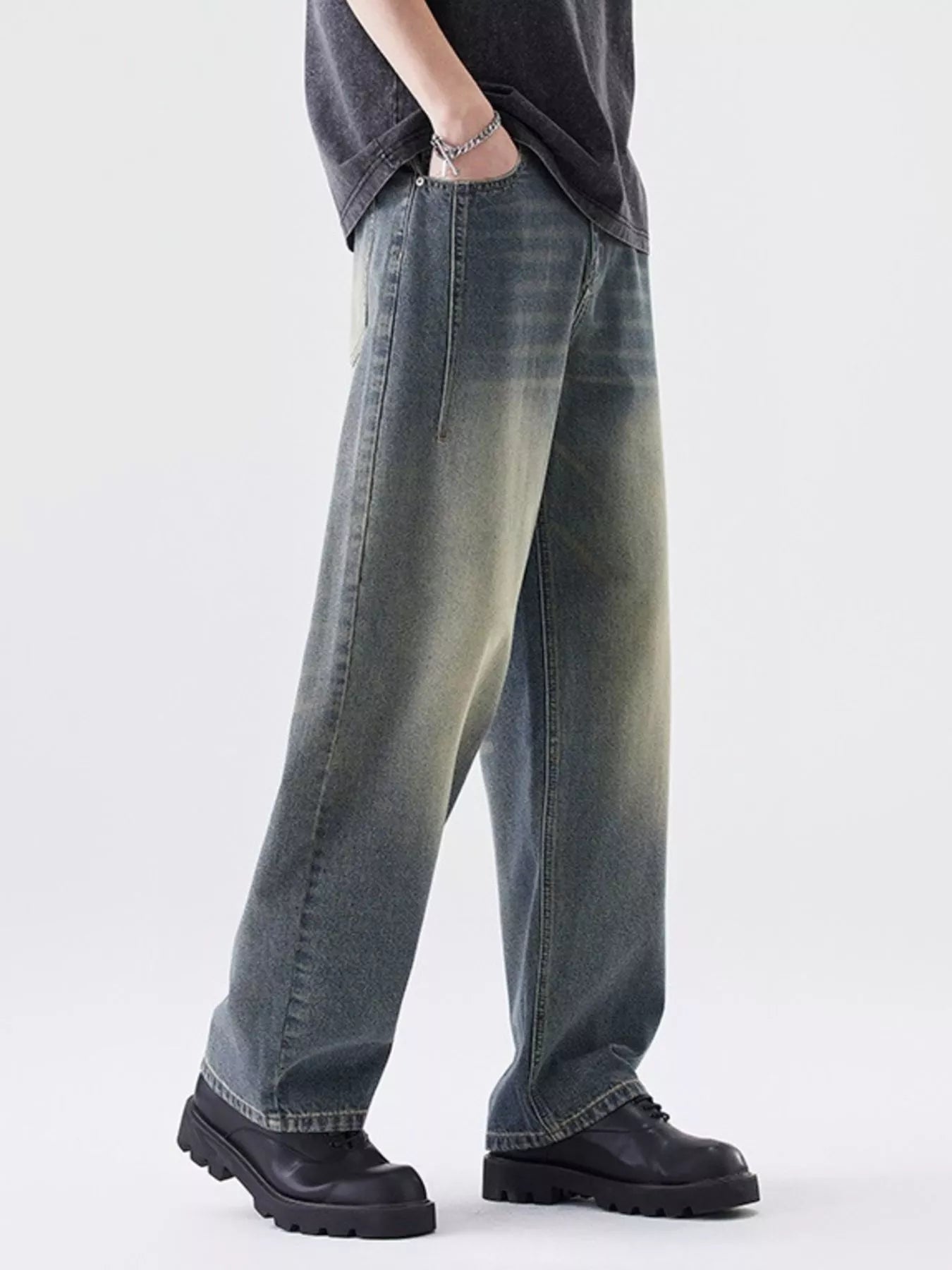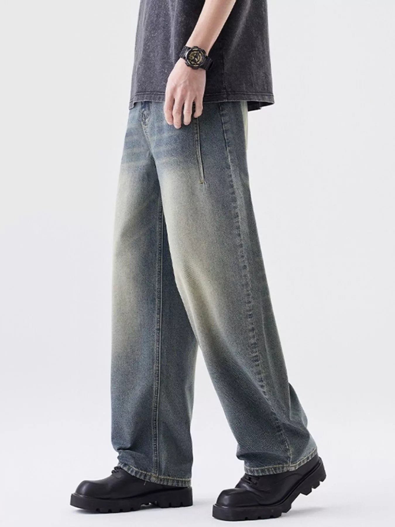Men's Washed Wide Leg Relaxed Fit Jeans