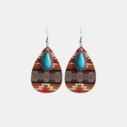 Turquoise Teardrop Shape Wooden Dangle Earrings