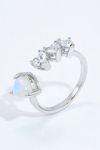 Natural Moonstone and Zircon Heart Open Ring