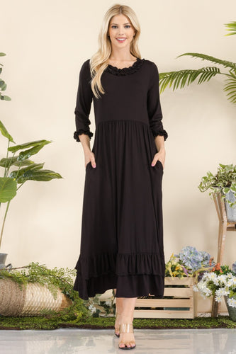 Celeste Full Size Layered Ruffle Hem Dress with Pockets