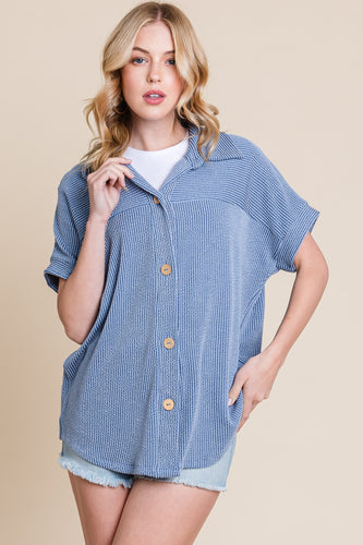 BOMBOM Button Up Short Sleeves Ribbed Shirt
