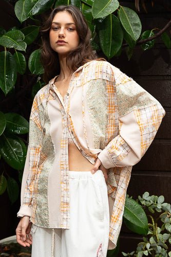 POL Long Sleeve Knit Mixed Hoodie Plaid Shirt
