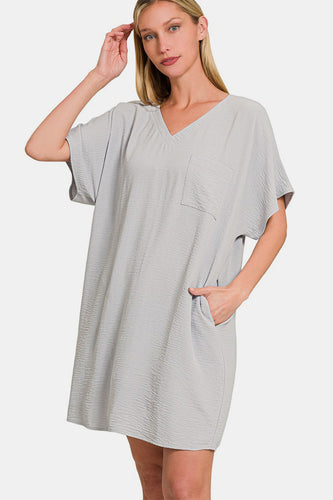 Zenana V-Neck Tee Dress with Pockets