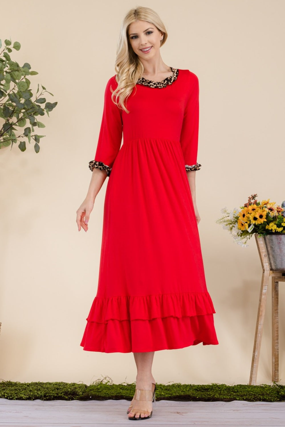 Celeste Full Size Leopard Ruffle Detail Midi Dress