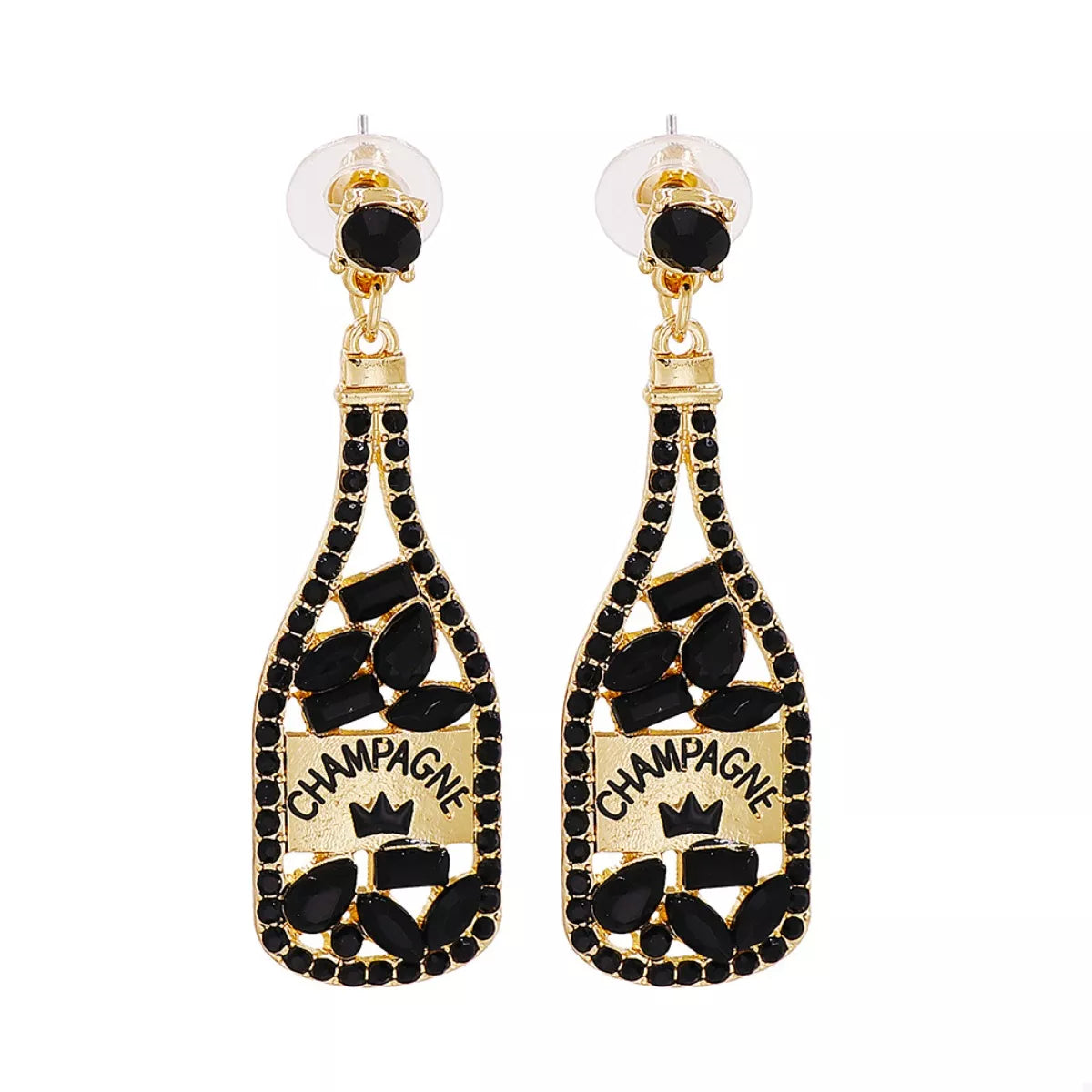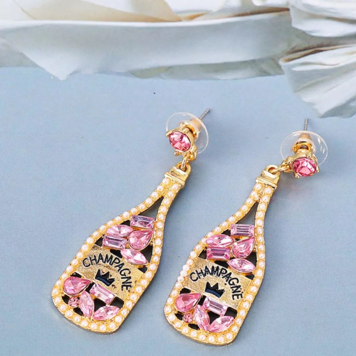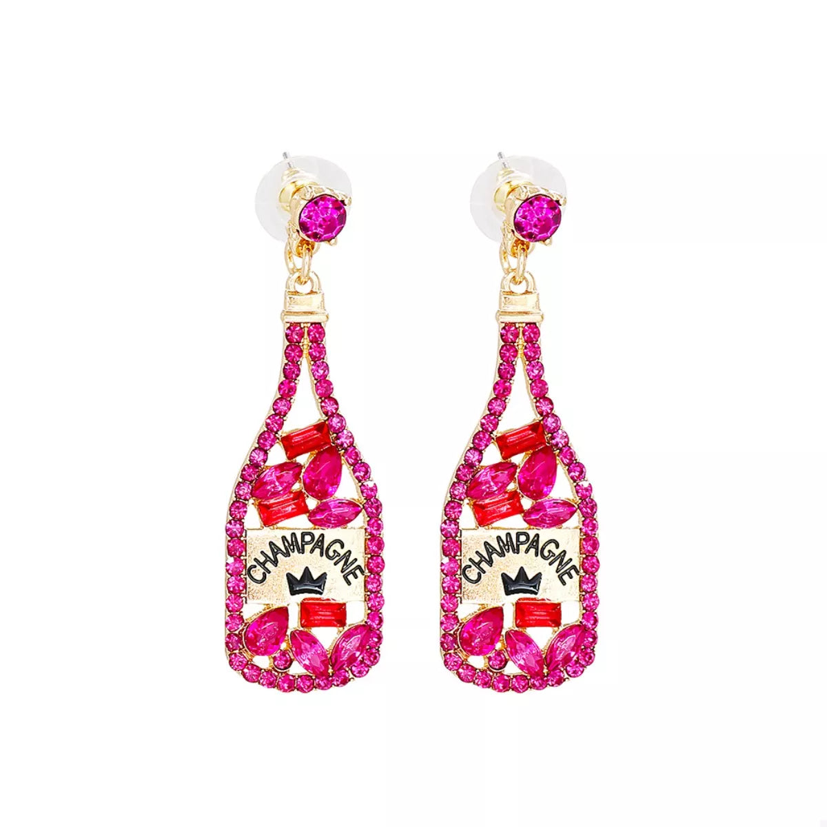 Champagne Bottle Dangle Earrings with Colorful Rhinestones