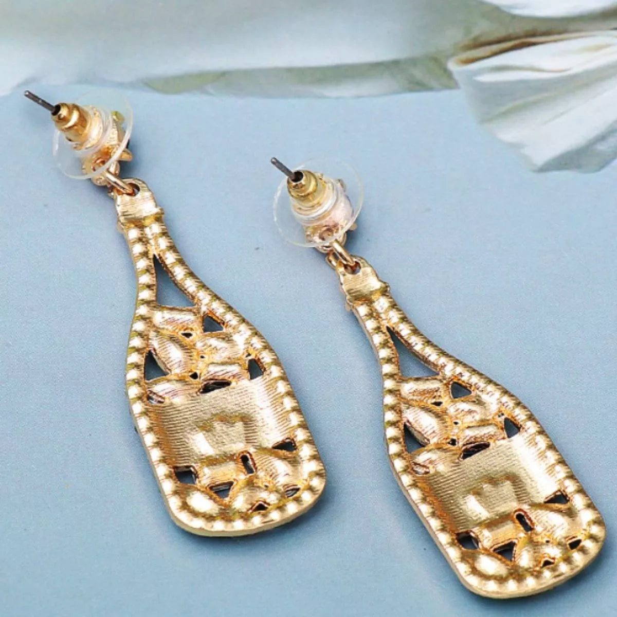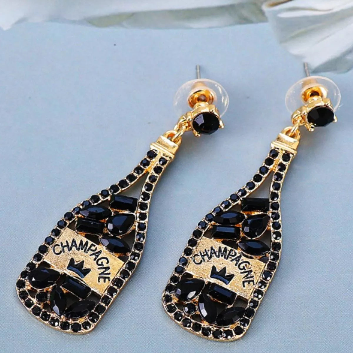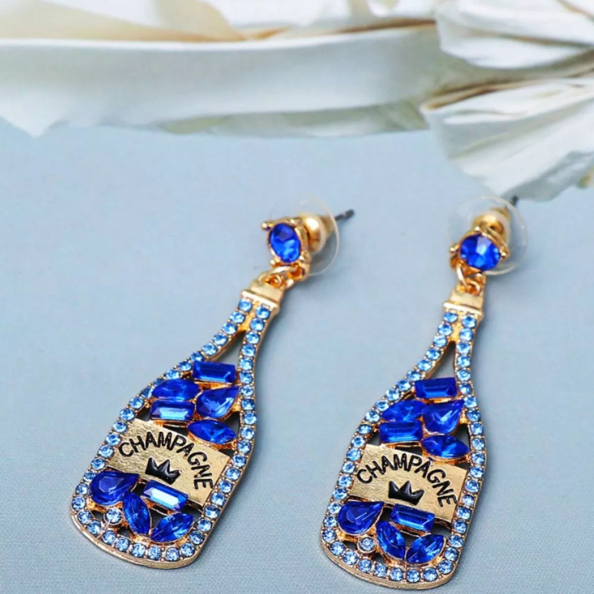 Champagne Bottle Dangle Earrings with Colorful Rhinestones