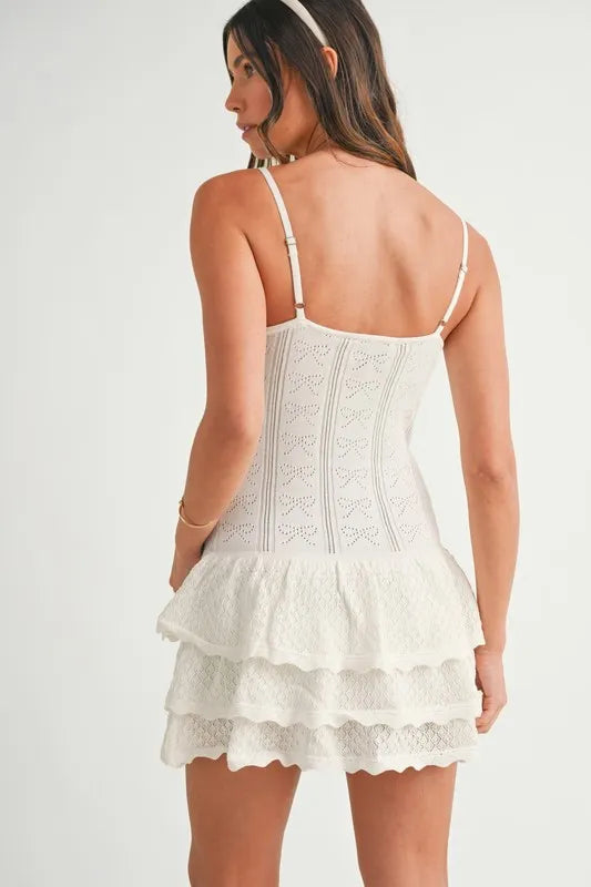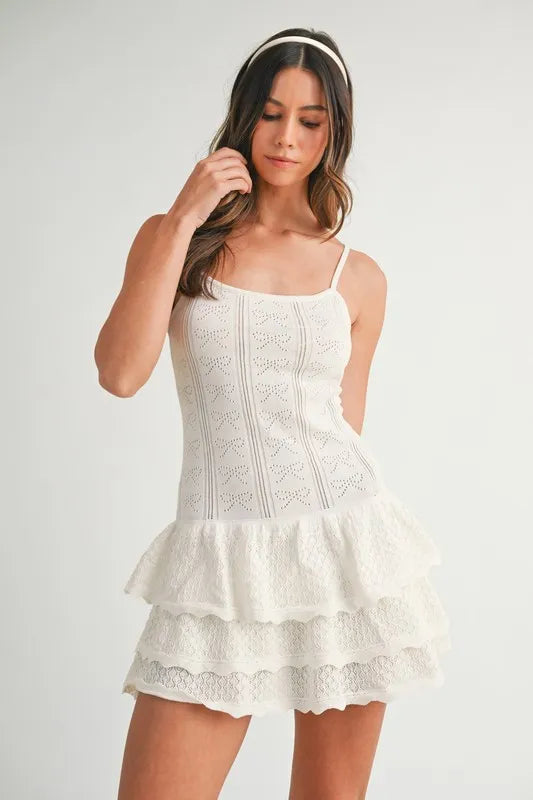 MABLE Bow Pointelle Knit Ruffle Mini Dress