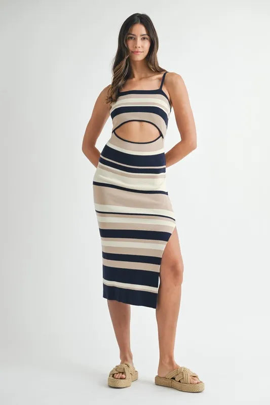 MABLE Multi Color Striped Front Cutout Knit Midi Dress