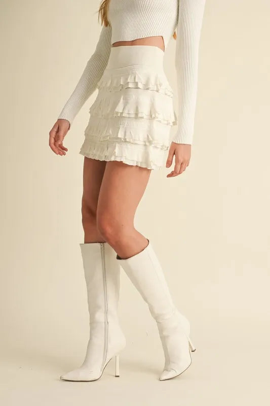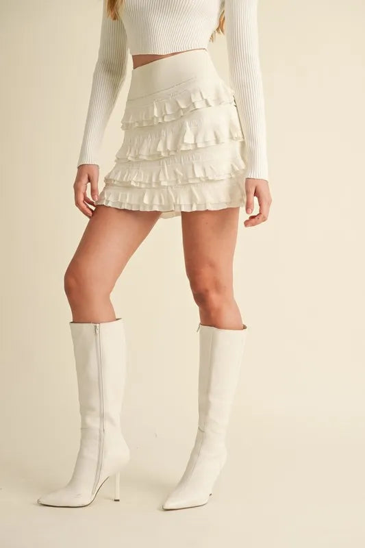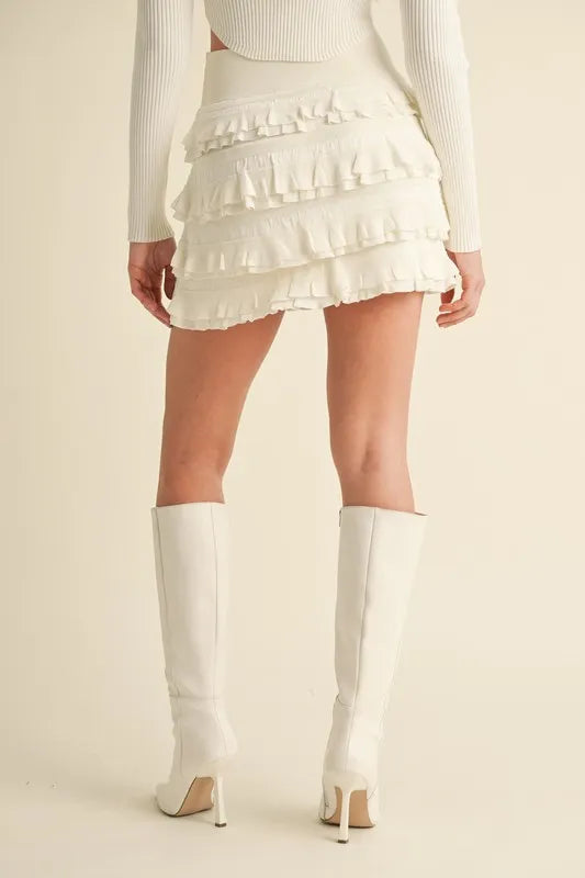 MABLE Ruffled Detail High Waist Knit Mini Skirt