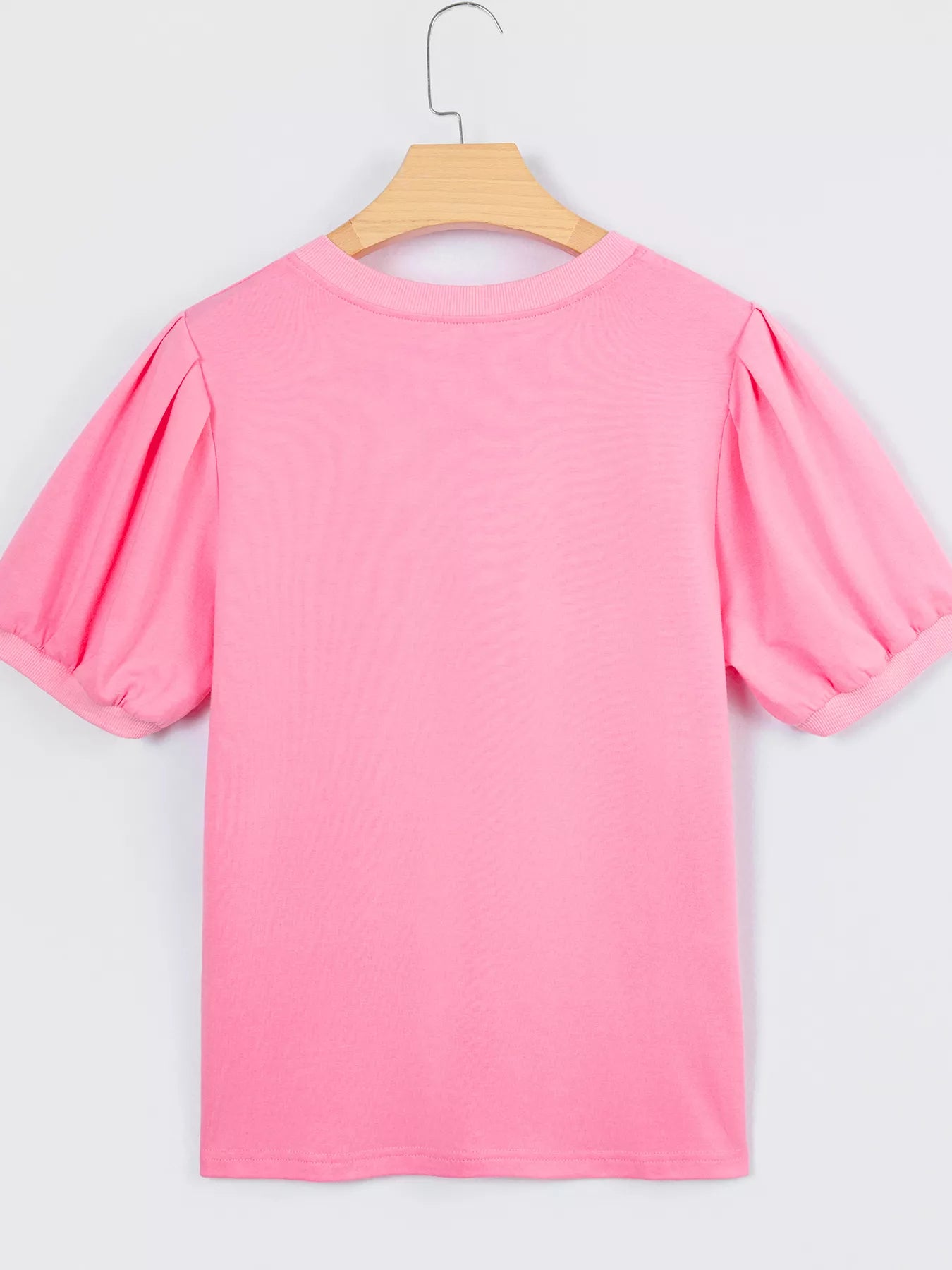 Solid Color V Neck Short Puff Sleeve Blouse