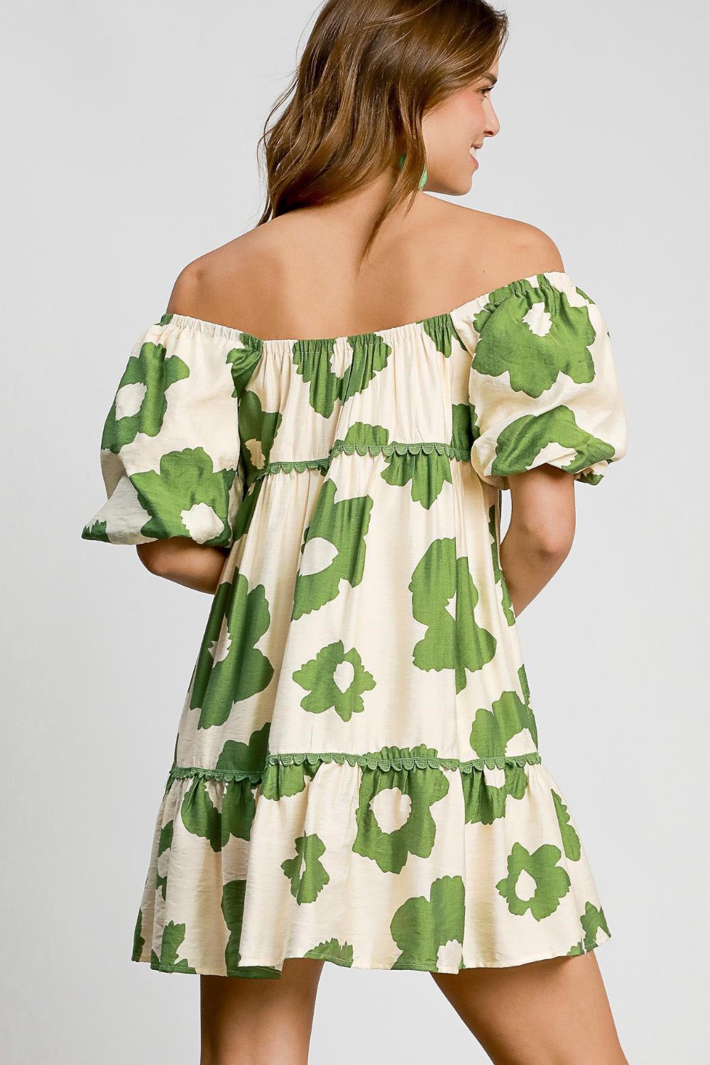 Umgee Full Size Contrast Floral Short Sleeve Mini Dress Plus Size