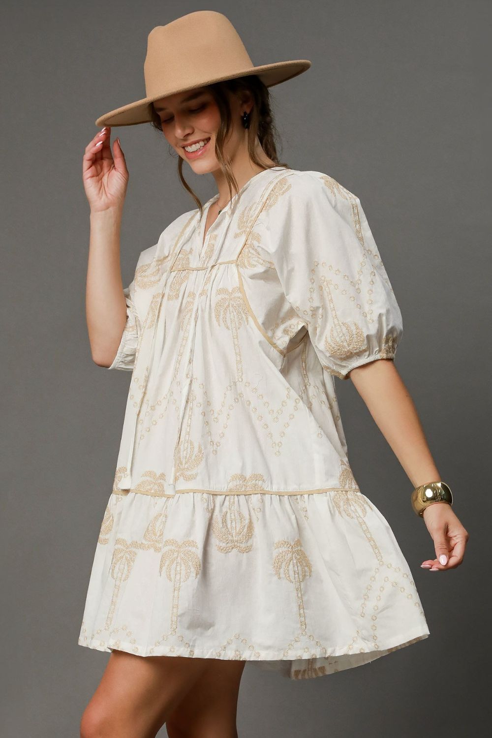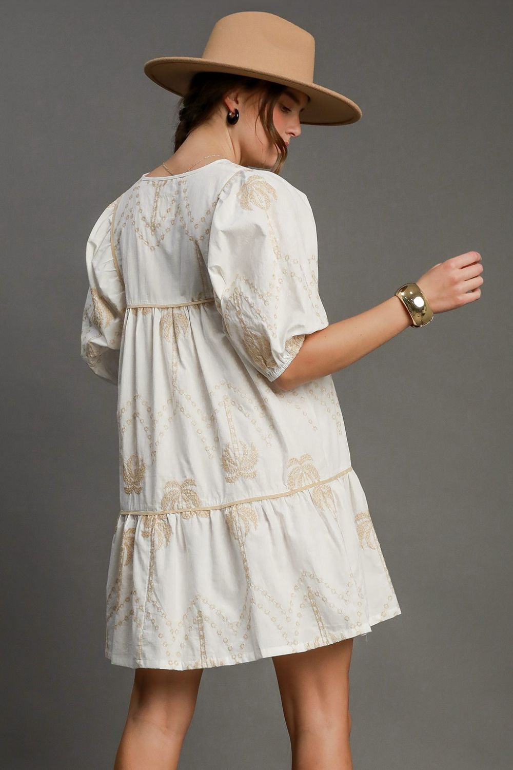 Umgee Full Size Embroidered Puff Sleeve Babydoll Dress Plus Size
