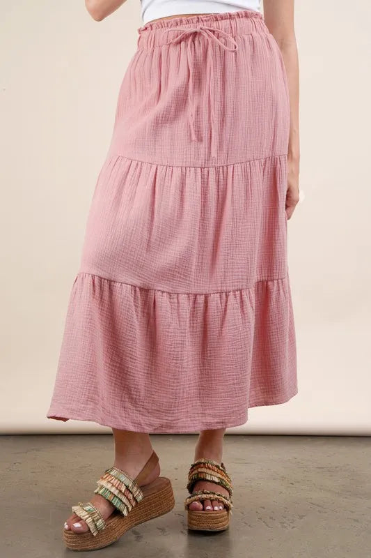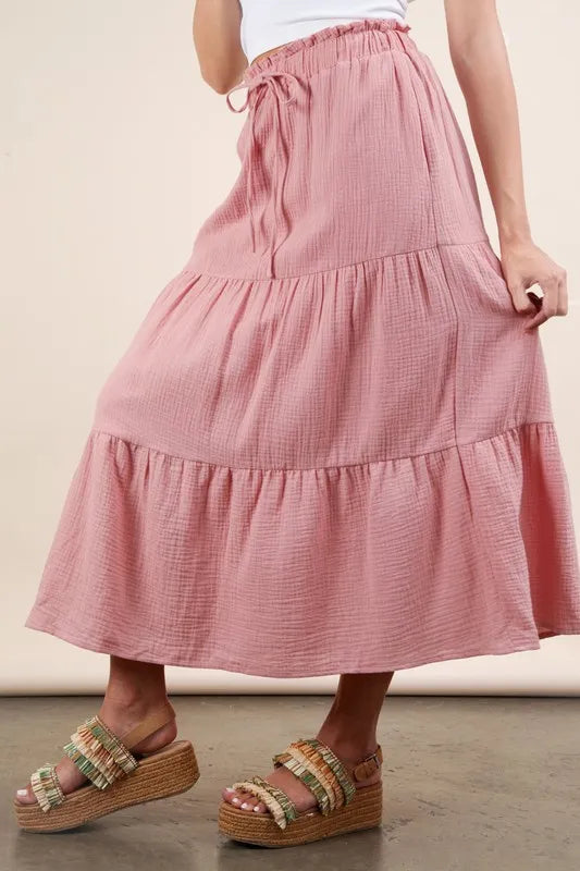 VERY J Elastic Waist Tiered Maxi Skirt