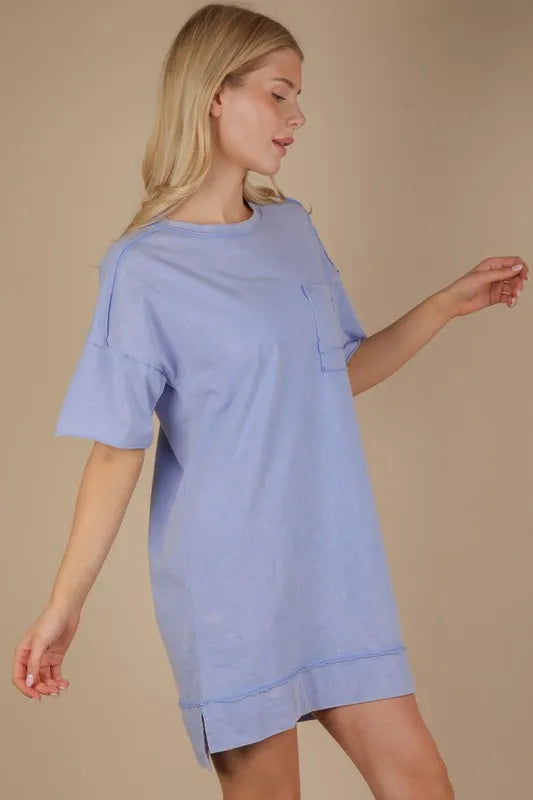A mineral washed knit shift mini dress is a stylish and comfortable option for casual wear. The mineral wash gives it a unique, vintage look, while the knit fabric ensures a soft and stretchy feel. This type of dress is usually loose-fitting and falls above the knee, making it great for a relaxed and effortless look. You can style it with sneakers or sandals for a laid-back vibe, or dress it up with accessories and heels for a more polished ensemble.