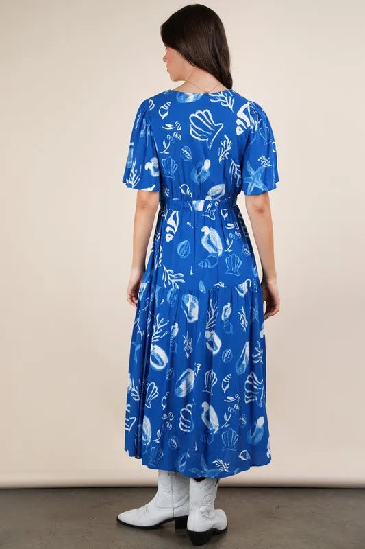 The Printed V-Neck Resort Midi Dress is a stylish and versatile option for a resort or vacation outfit. The V-neckline adds a flattering touch, while the midi length offers a chic and relaxed look. The printed design adds a pop of color and flair, making it perfect for a day out exploring or relaxing by the beach.