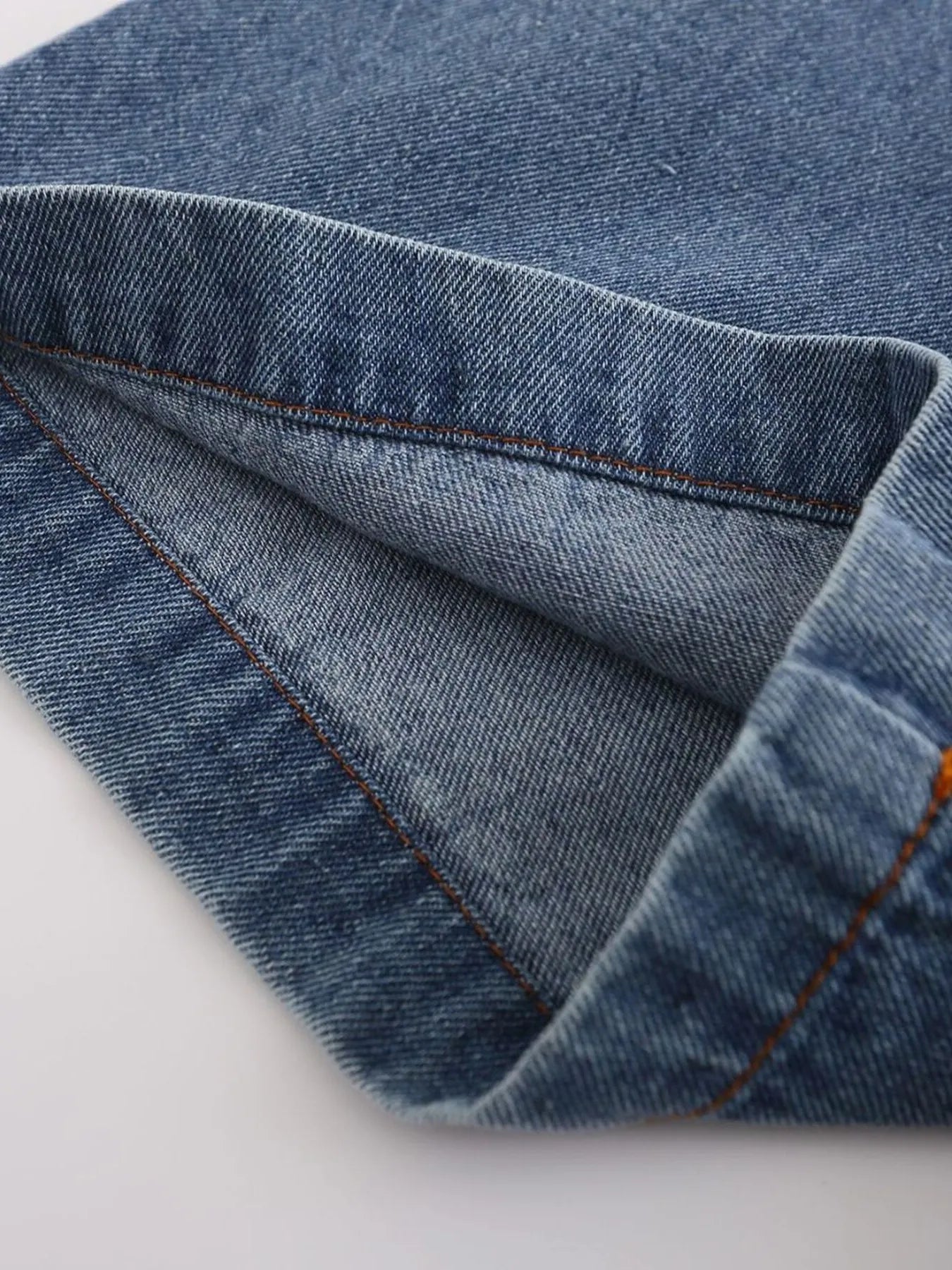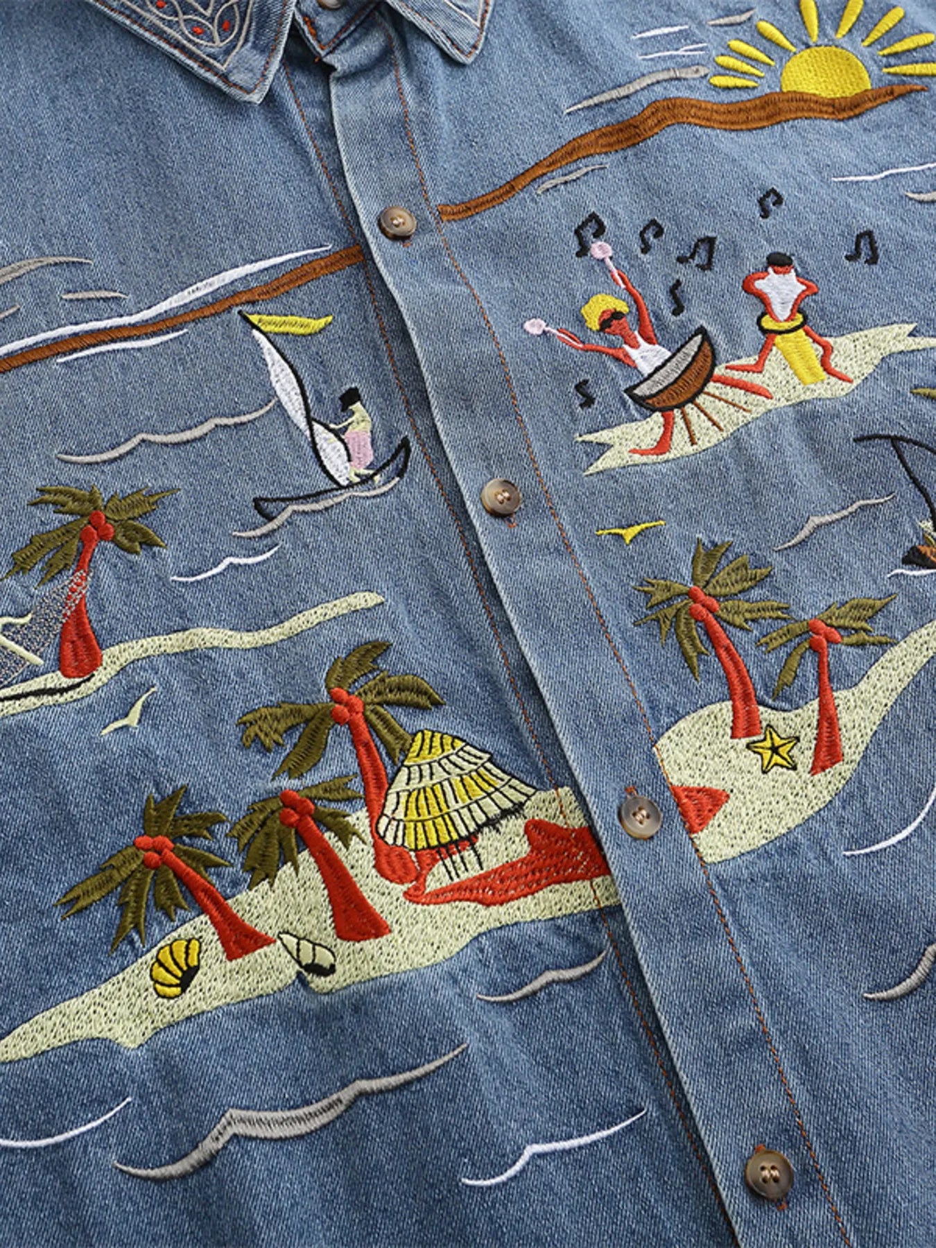 Men's Embroidered Oversized Short Sleeve Denim Shirt