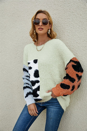 Heart Print Fuzzy Crewneck Long Sleeve Sweater