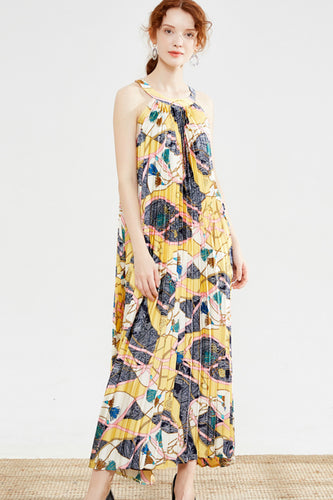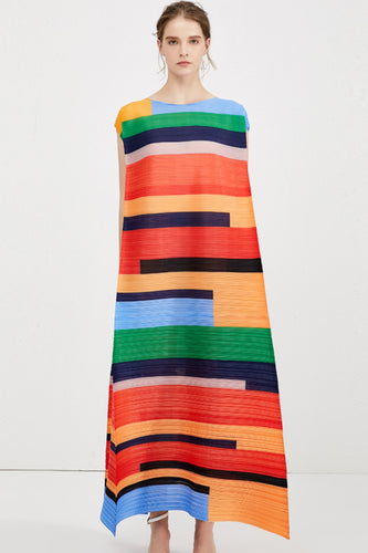 Mixed Stripes Accordion Pleated Dolman Sleeve Midi Dress