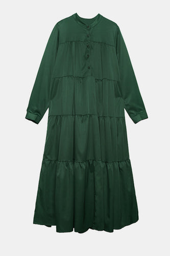 Half Button Band Neck Tiered Maxi Shirt Dress