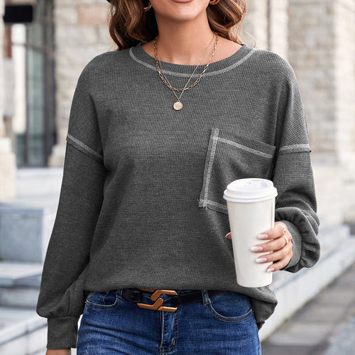Contrast Stitch Lantern Sleeve Tee with Breast Pocket