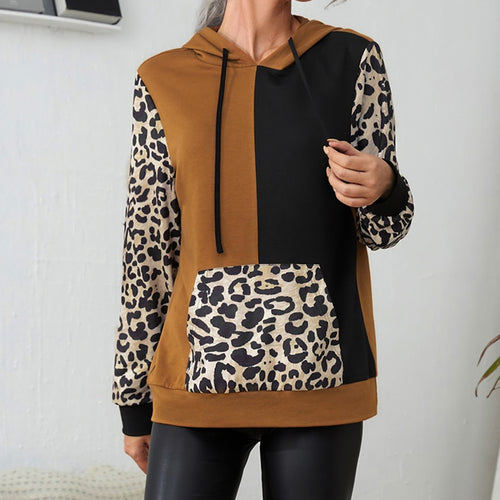 Leopard Color Block Tunic Hoodie with Kangaroo Pocket