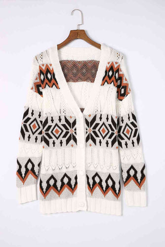 Geometric V-Neck Button Down Cardigan