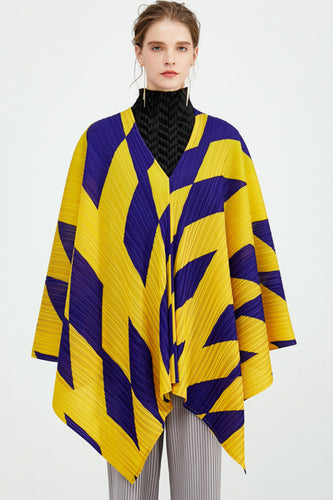 Two-Tone Accordion Pleated Slit V-Neck Poncho