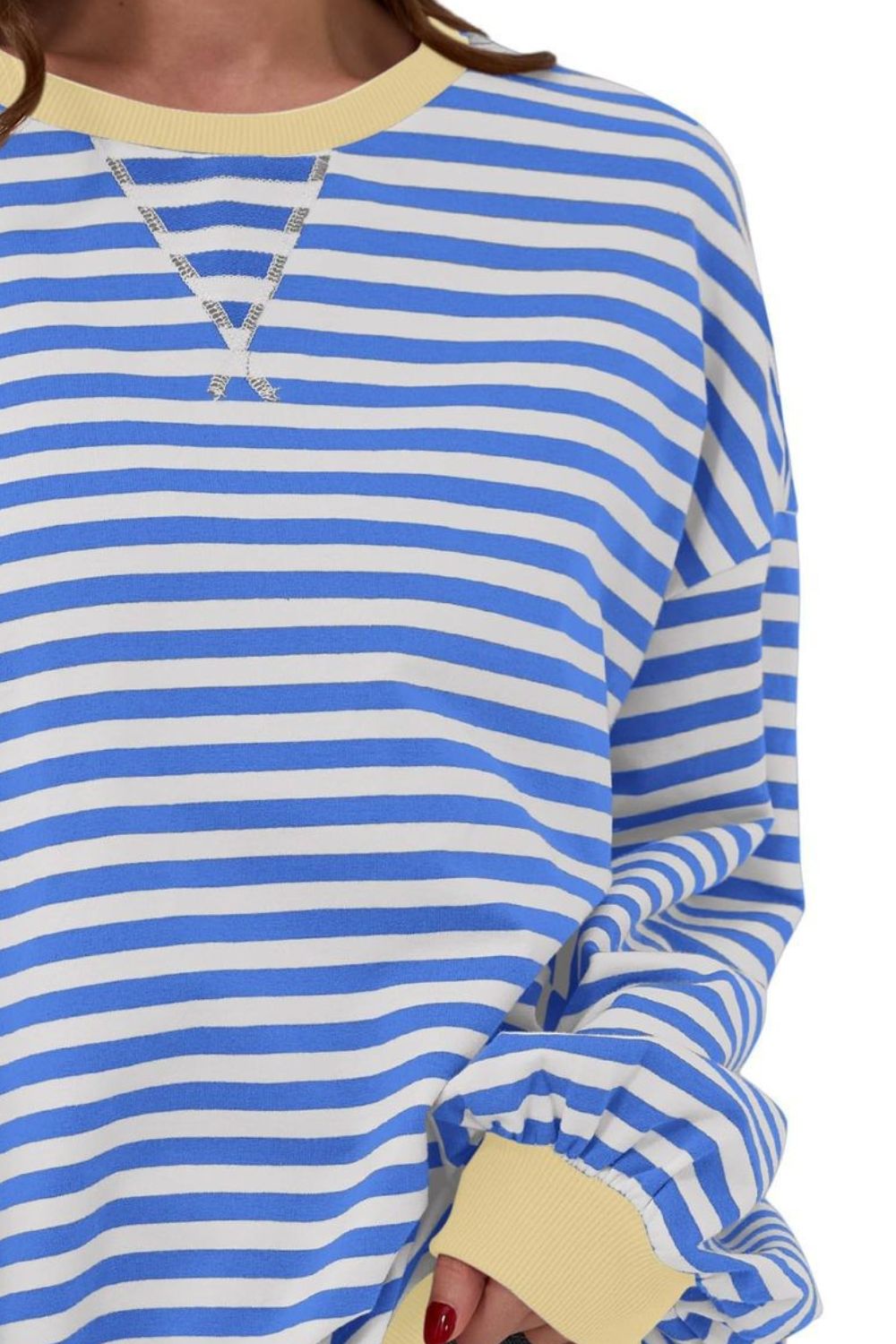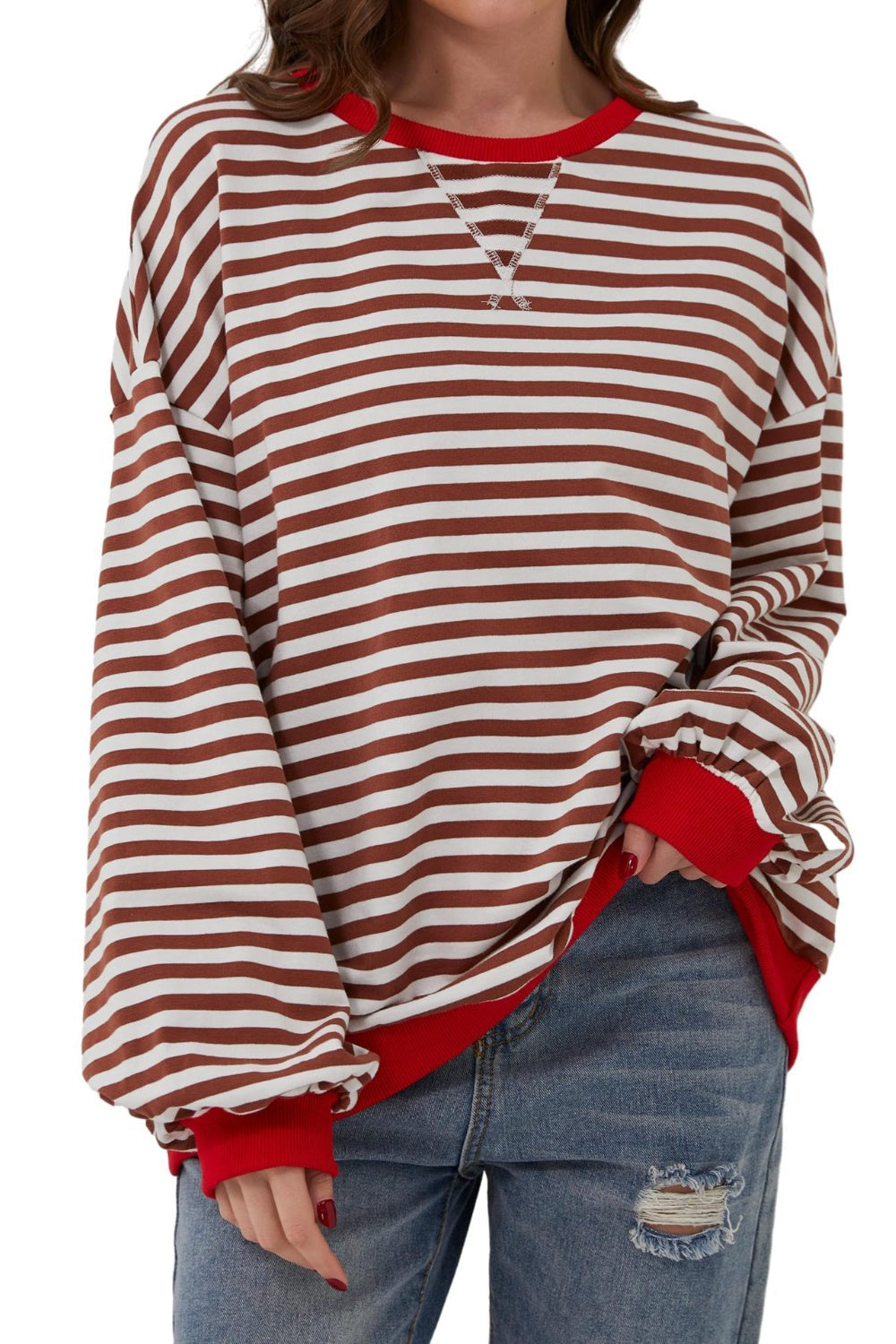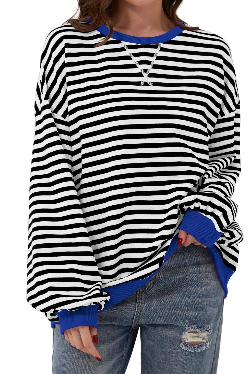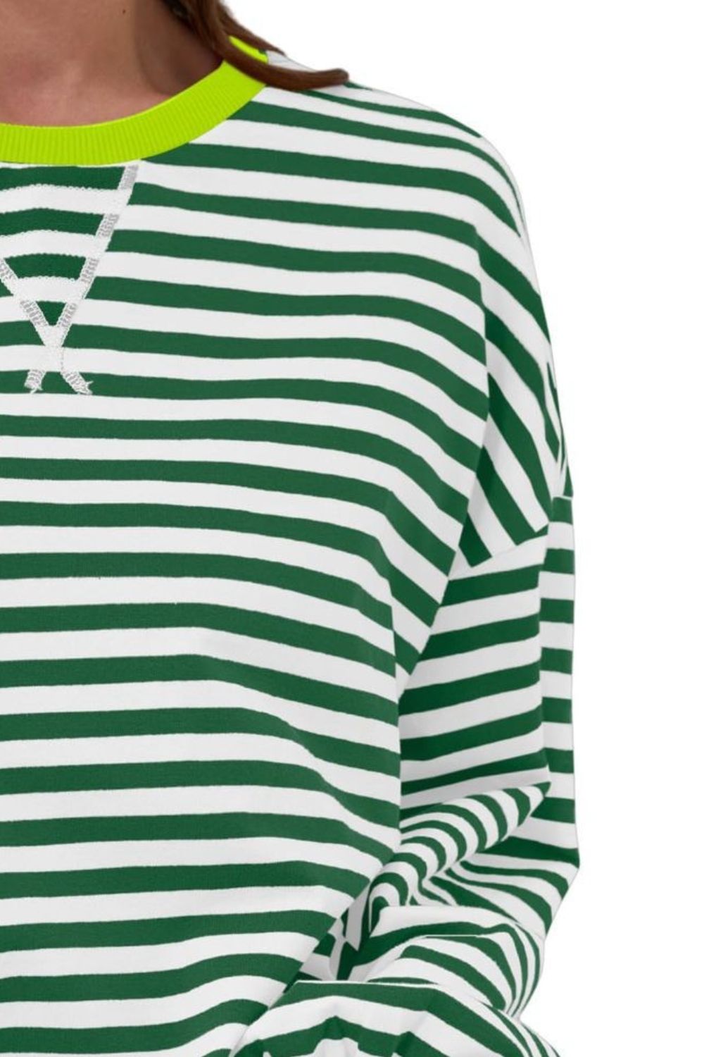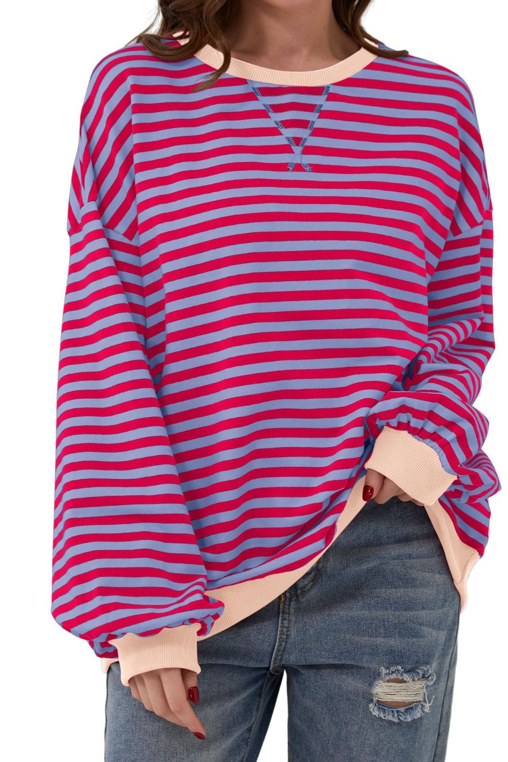 • Load image into Gallery viewer, Striped Round Neck Long Sleeve Sweatshirt