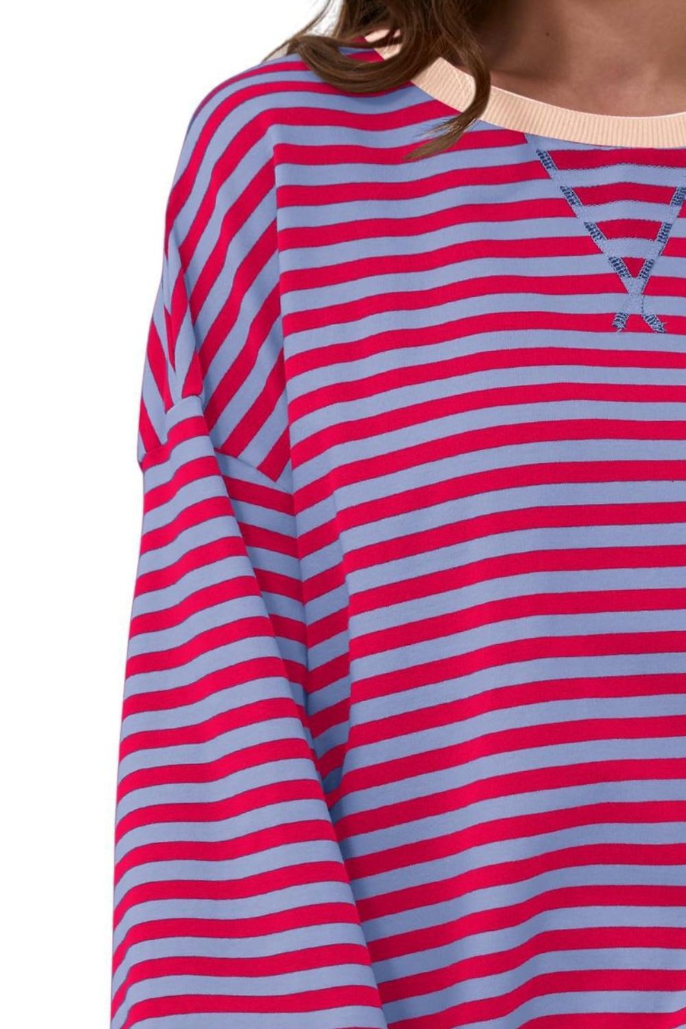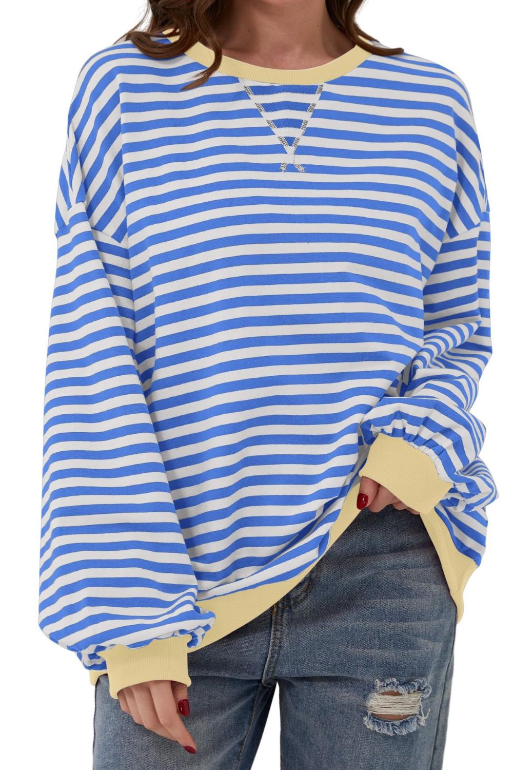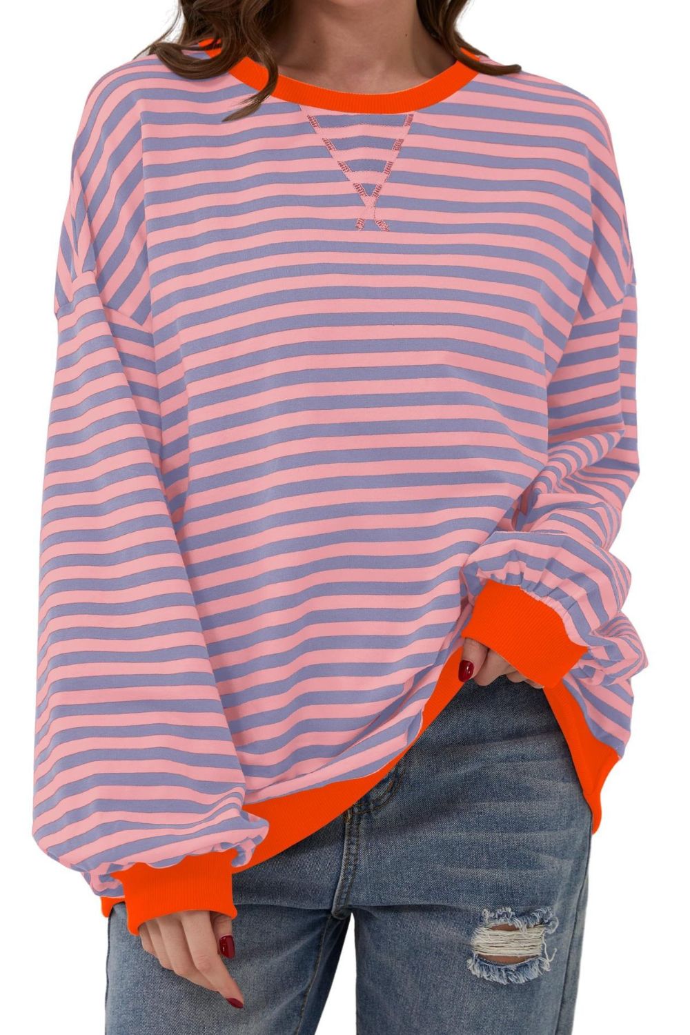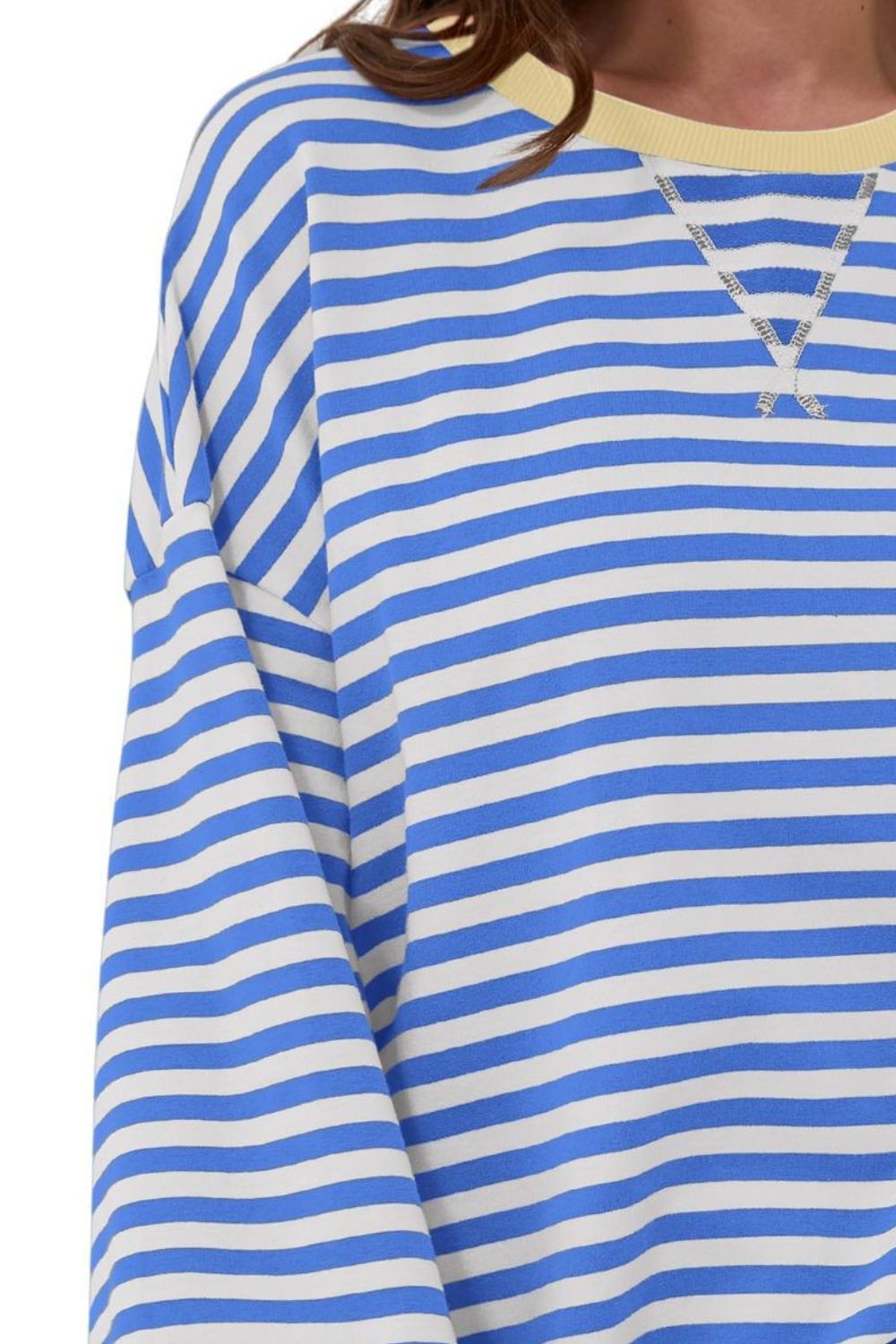 • Load image into Gallery viewer, Striped Round Neck Long Sleeve Sweatshirt