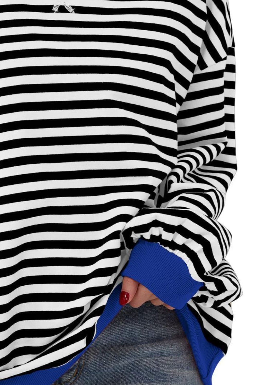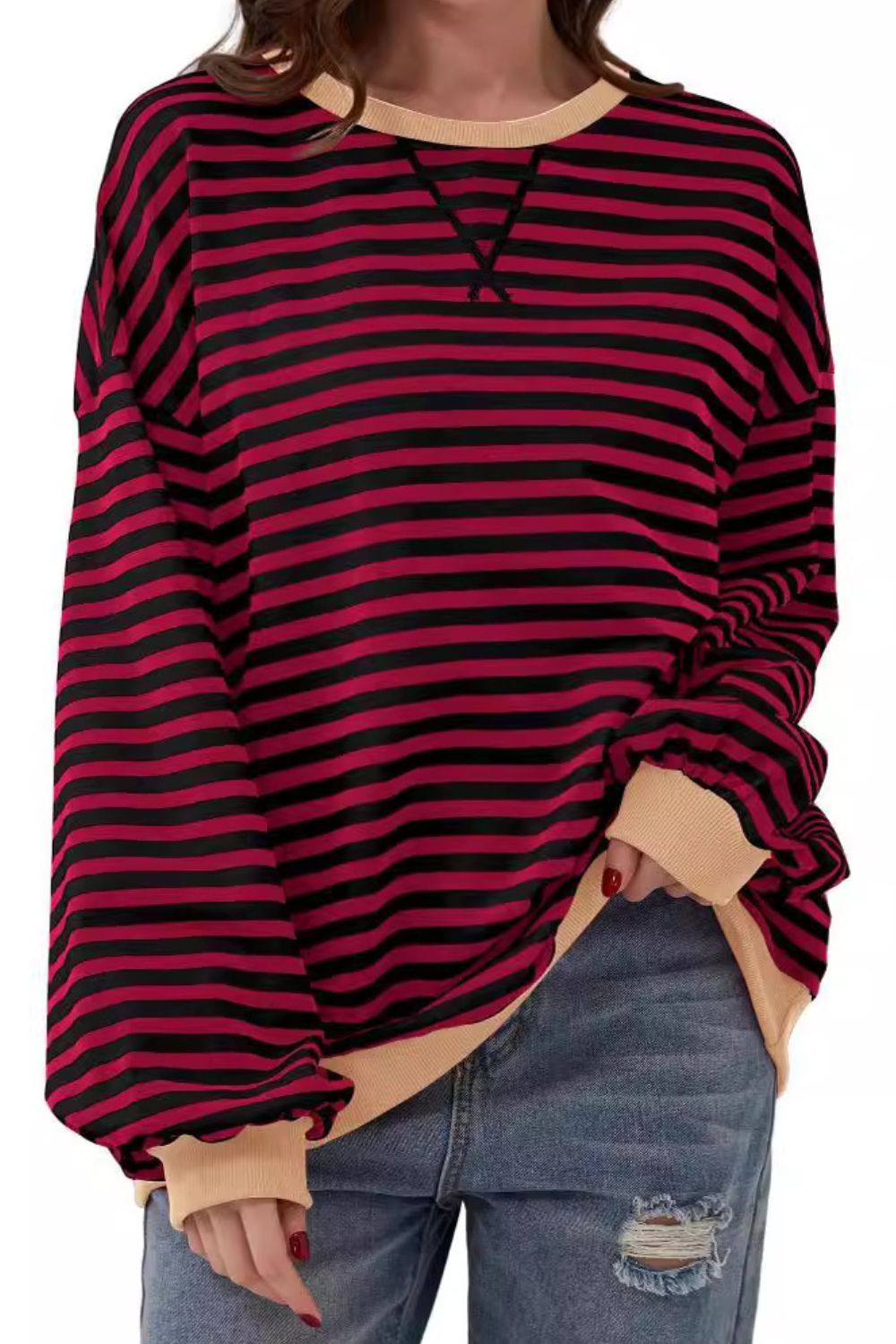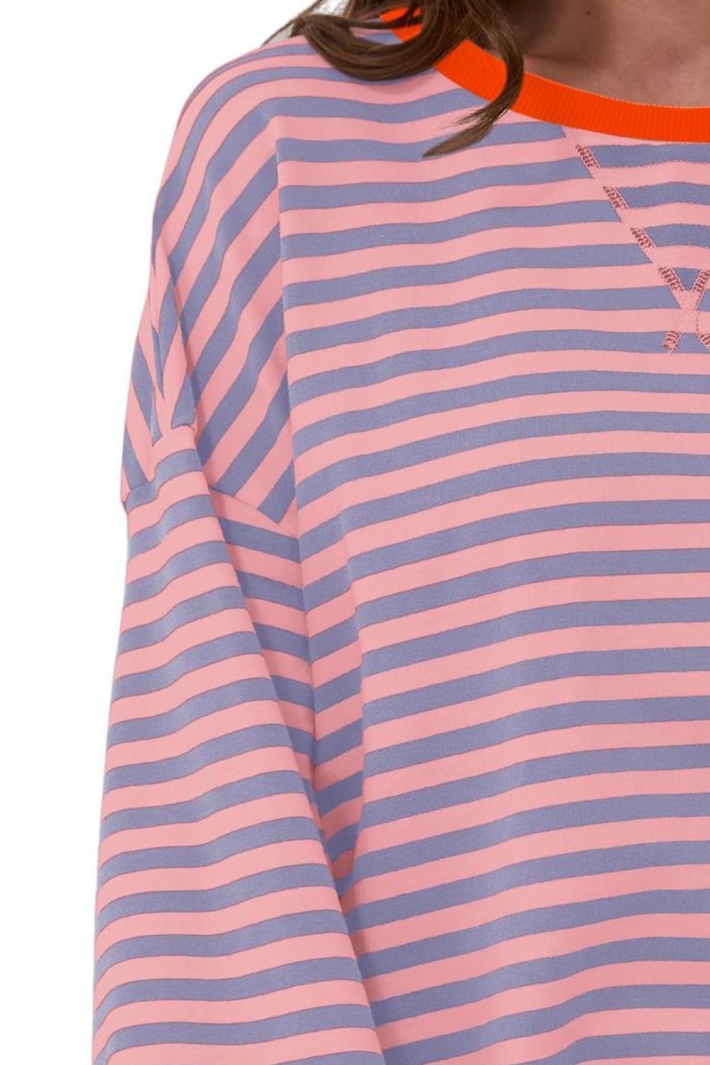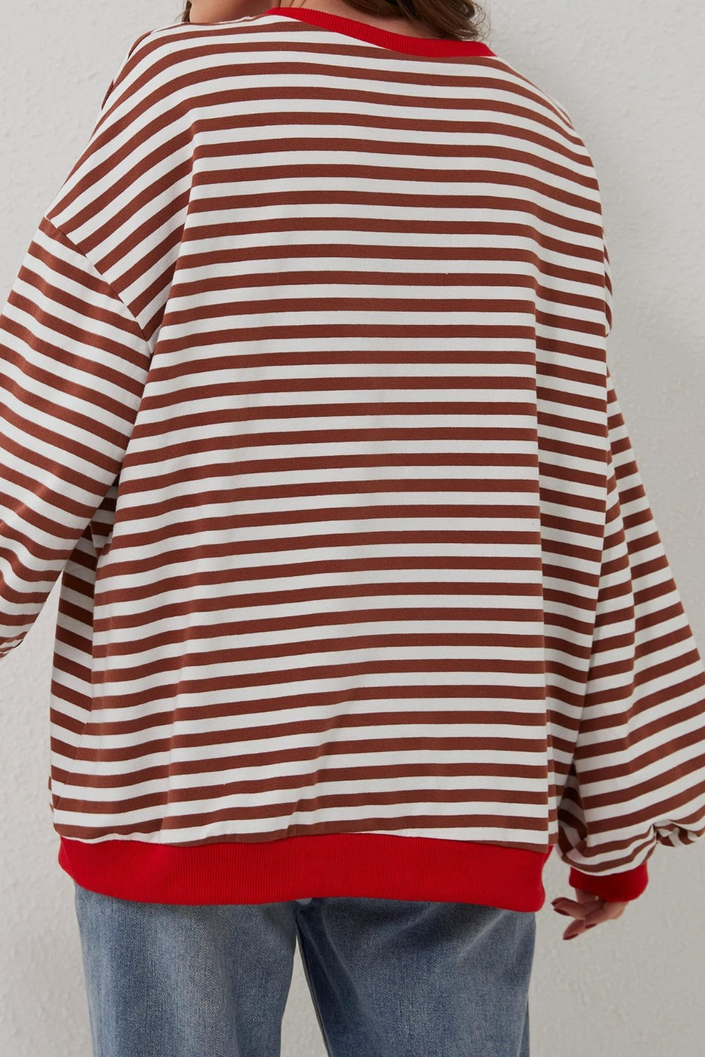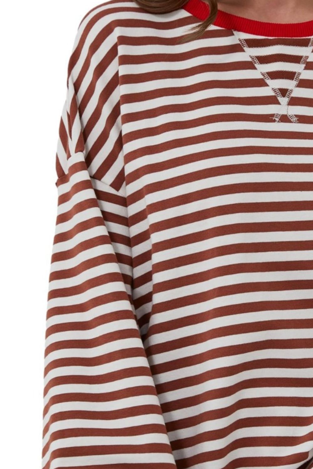 • Load image into Gallery viewer, Striped Round Neck Long Sleeve Sweatshirt