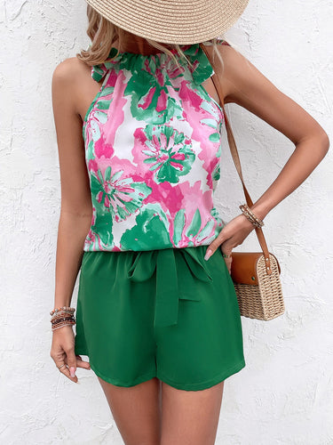 Openwork Flower V-Neck Short Sleeve Cover Up