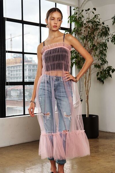 The Ruffled Mesh Cover Up Dress is a stylish and versatile piece that adds a touch of elegance to your beach or poolside look. Featuring a ruffled design and made from airy mesh fabric, this cover-up dress is lightweight and perfect for layering over your swimwear. The ruffles add a feminine and playful touch to the dress, while the mesh material provides breathability and comfort in warm weather. Whether you're lounging by the pool or strolling along the beach, this cover-up dress is a chic and practical choice that allows you to stay stylish while providing some coverage. Embrace a breezy and fashionable look with this ruffled mesh cover-up dress that effortlessly combines style and functionality.