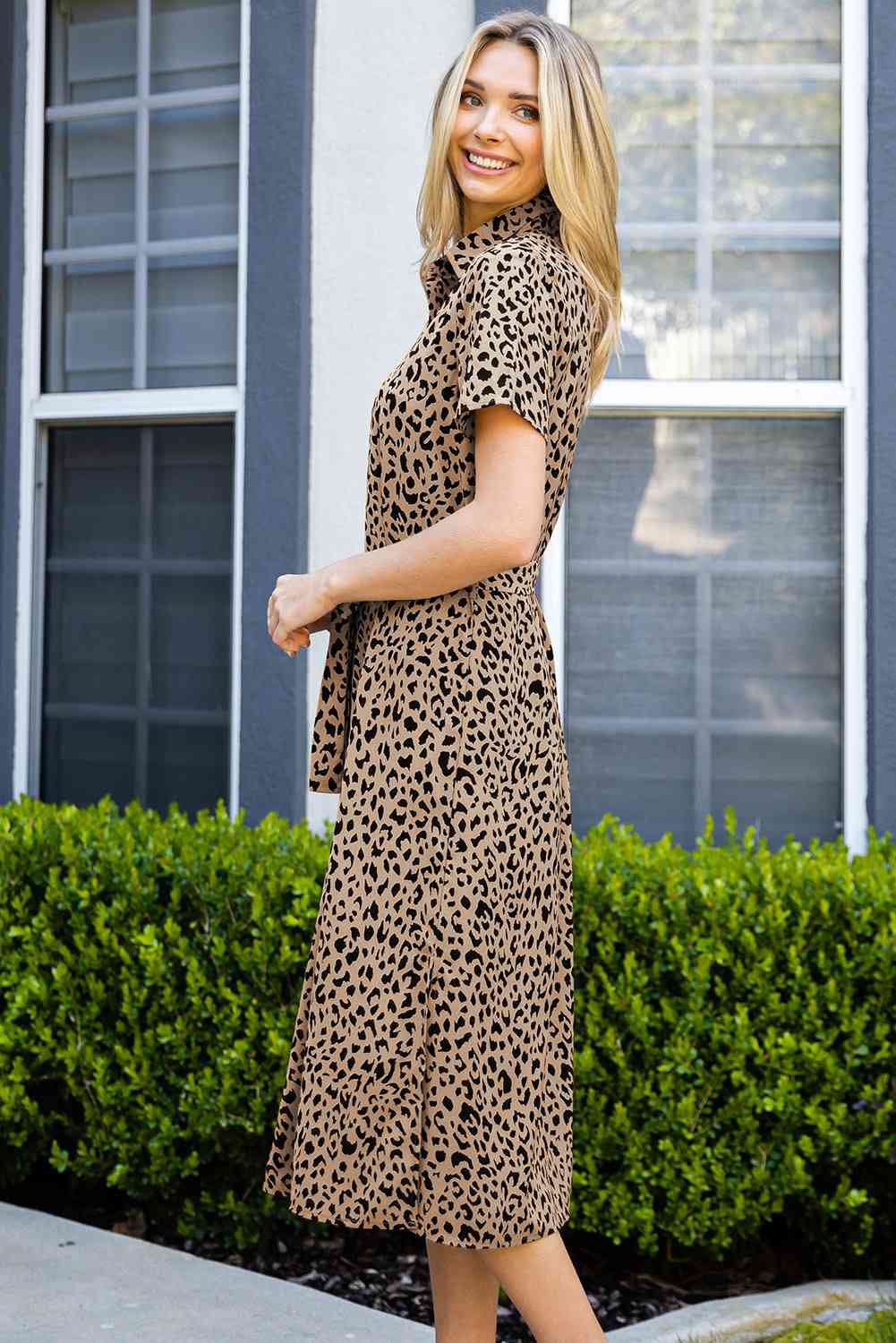 • Load image into Gallery viewer, Animal Print Short Sleeve Belted Dress