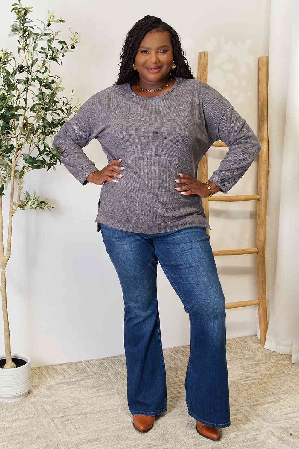 Basic Bae Round Neck Drop Shoulder Slit Sweatshirt