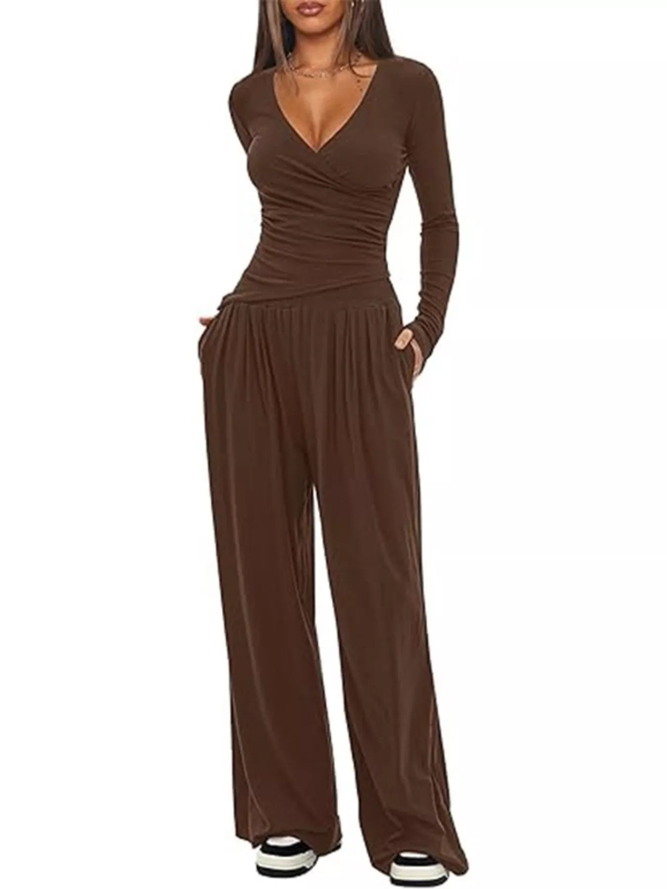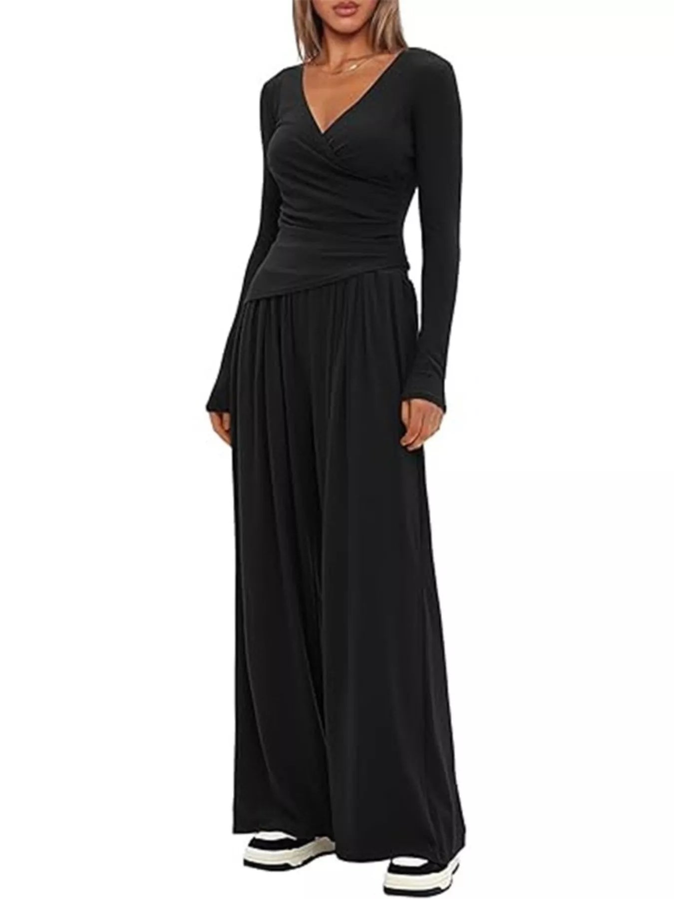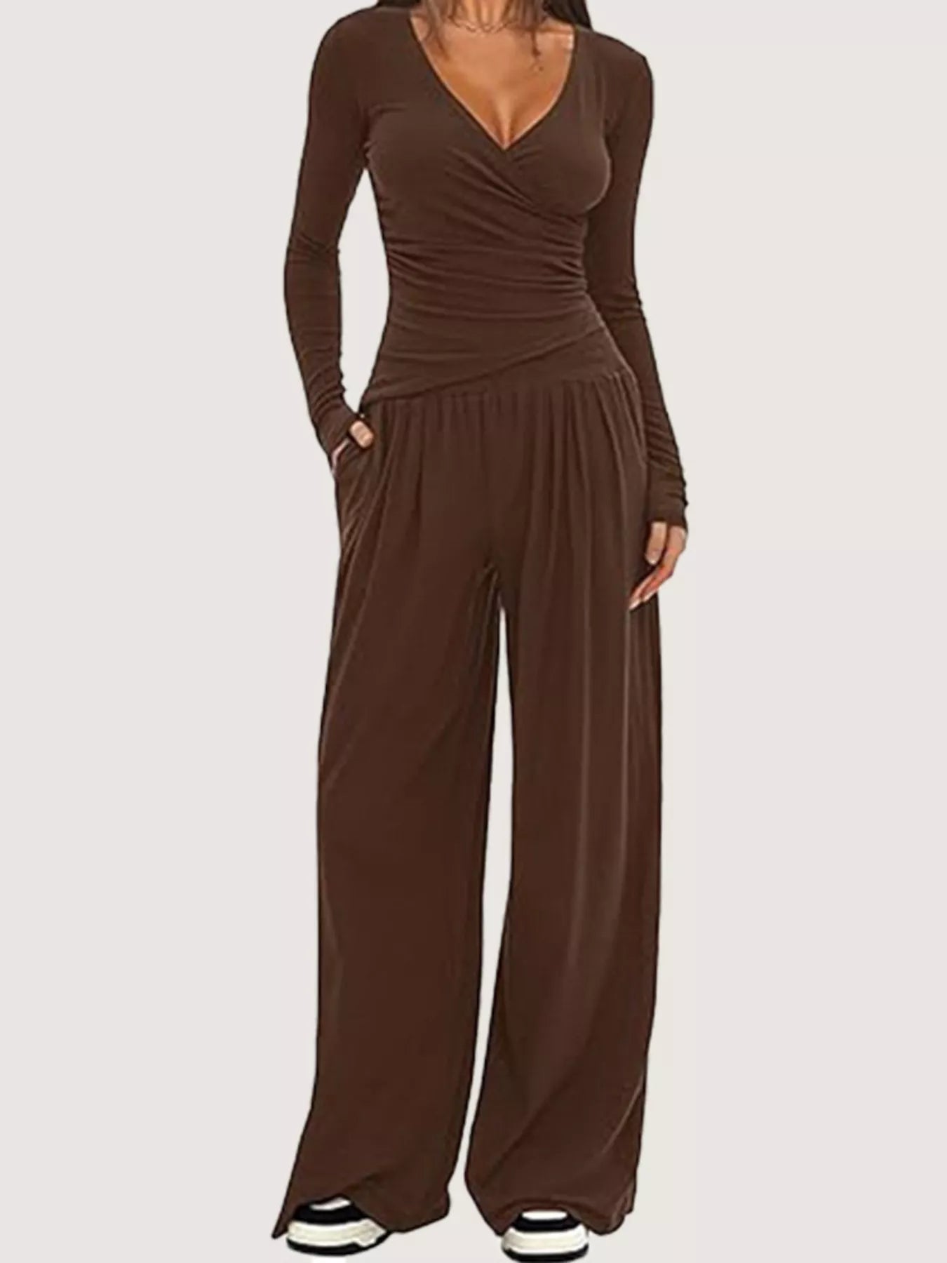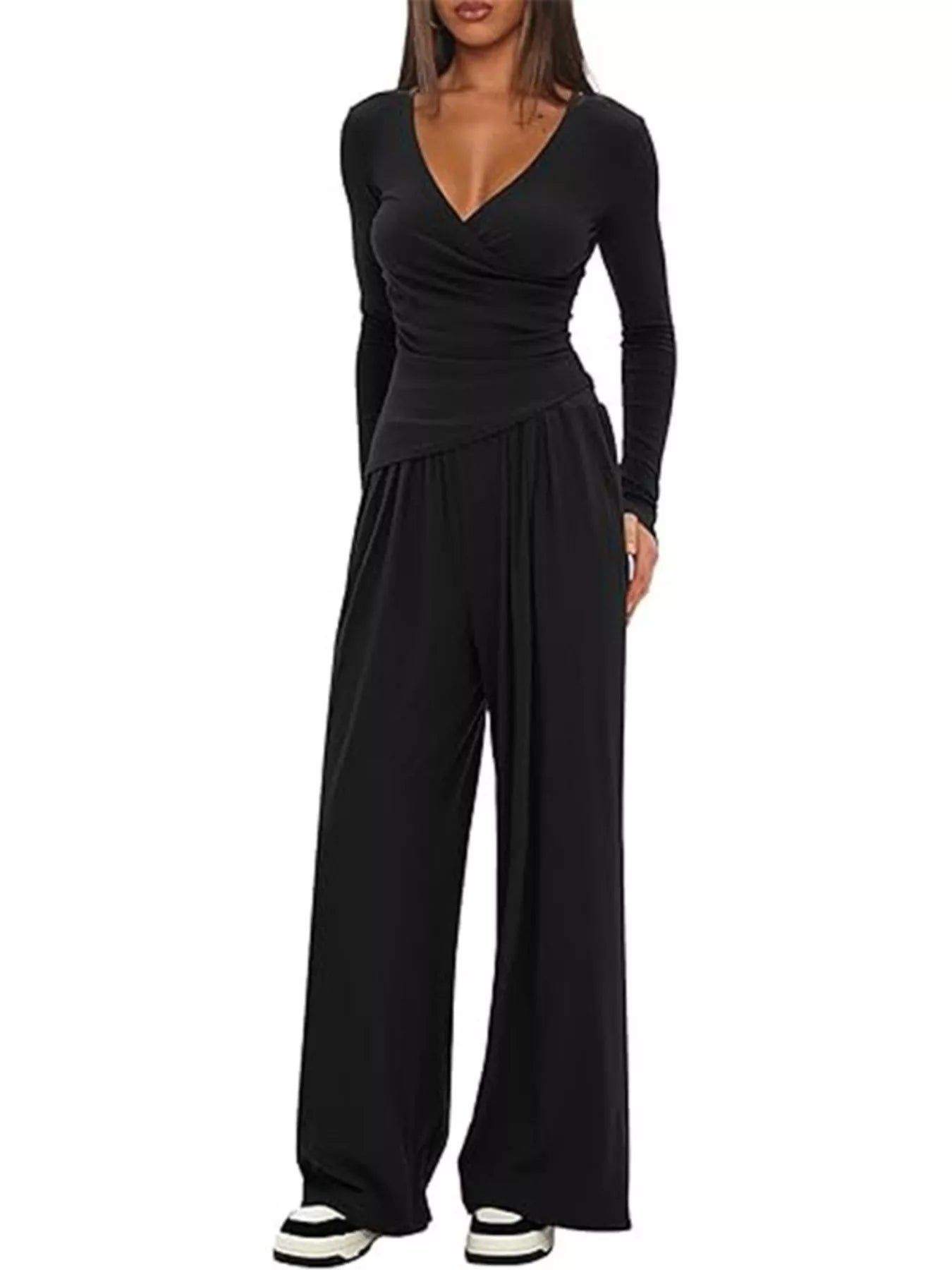 Casual Long Sleeve Top and Wide Leg Pants Set
